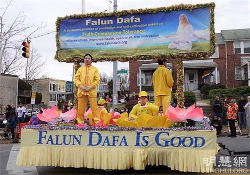 二零二一年十二月五日,美国马里兰州最大城市巴尔的摩举办圣诞节游行,一百六十个团体参加,法轮功队伍是其中之一,数万现场民众观看。第一次看到法轮功学员游行队伍的民众说,他们把美妙的能量带到巴尔的摩,真、善、忍正是当下这个世界所需要的。