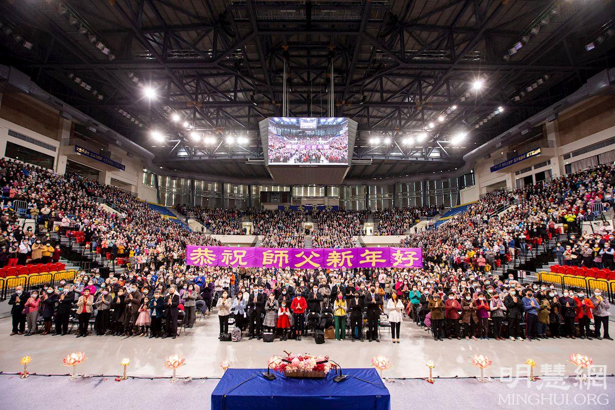 ![]() 图1~3:台湾法轮大法修炼心得交流会中,六千多名法轮功学员,在主厅及台语厅、儿童厅,同步恭祝师父新年好! |