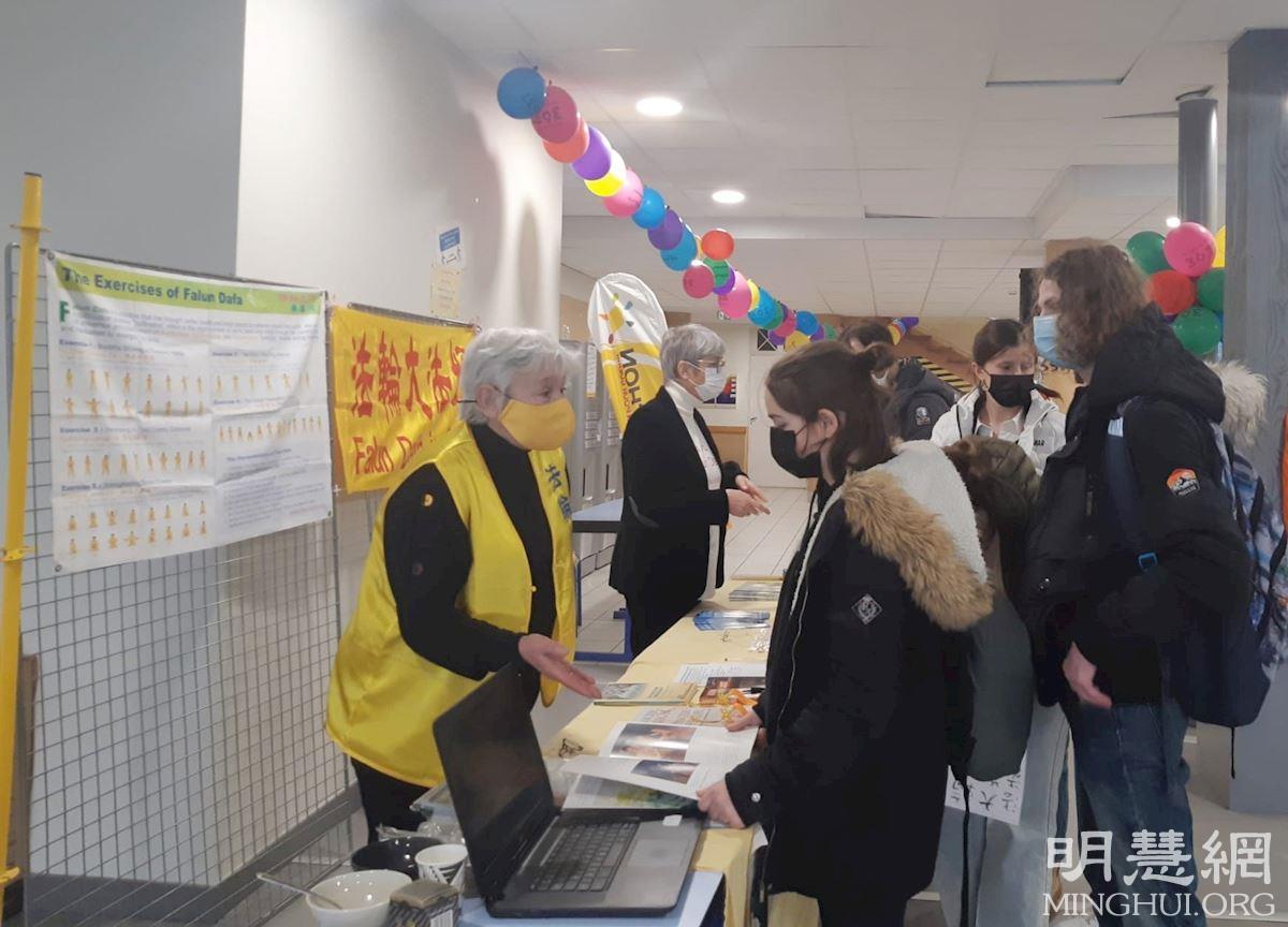 十二月十日,适逢国际人权日之际,经校长批准,弗蕾德里克在学校举办了一次讲真相活动,让学生们了解法轮功和法轮功在中国受迫害的真相。活动获得老师们的支持。