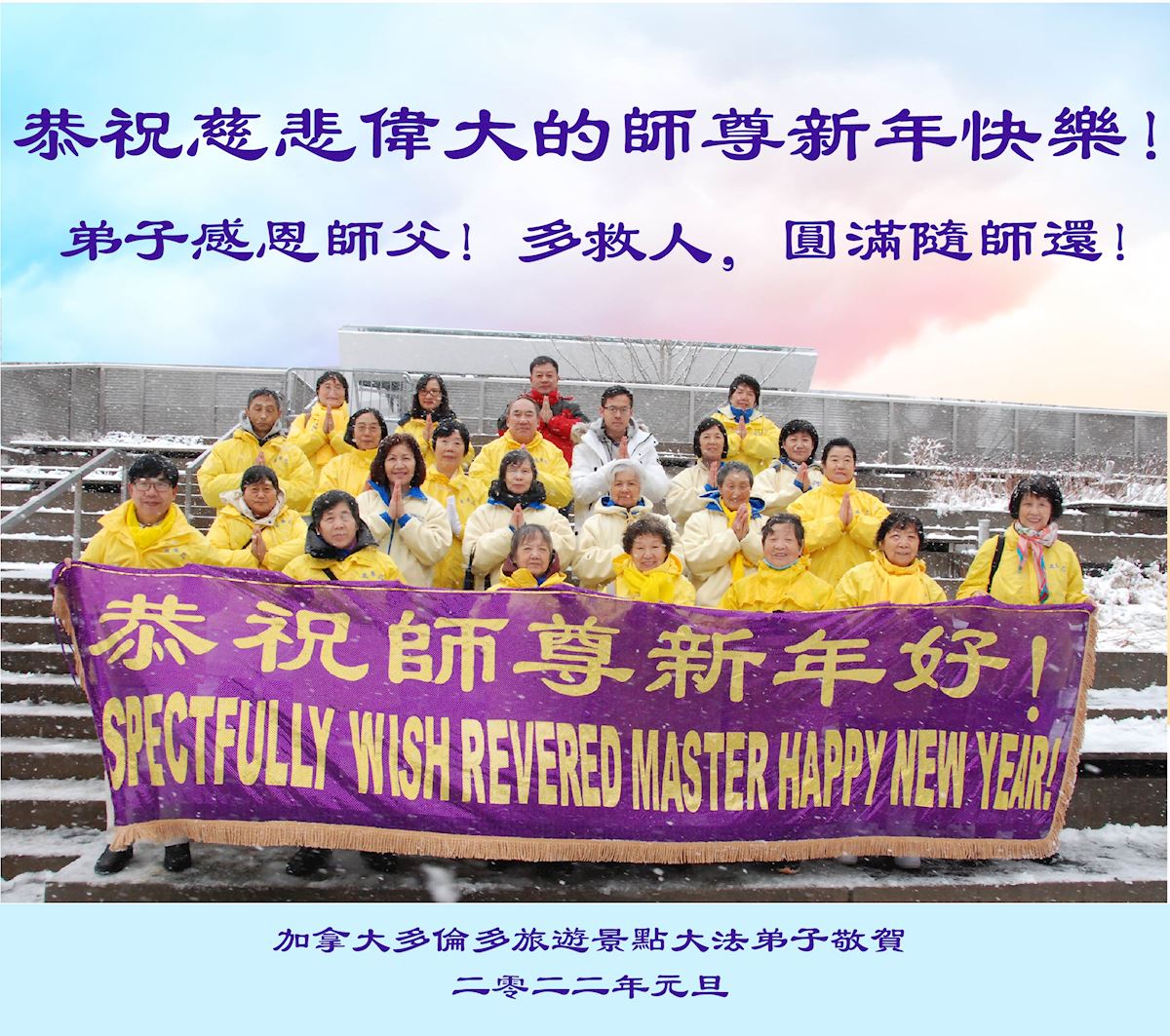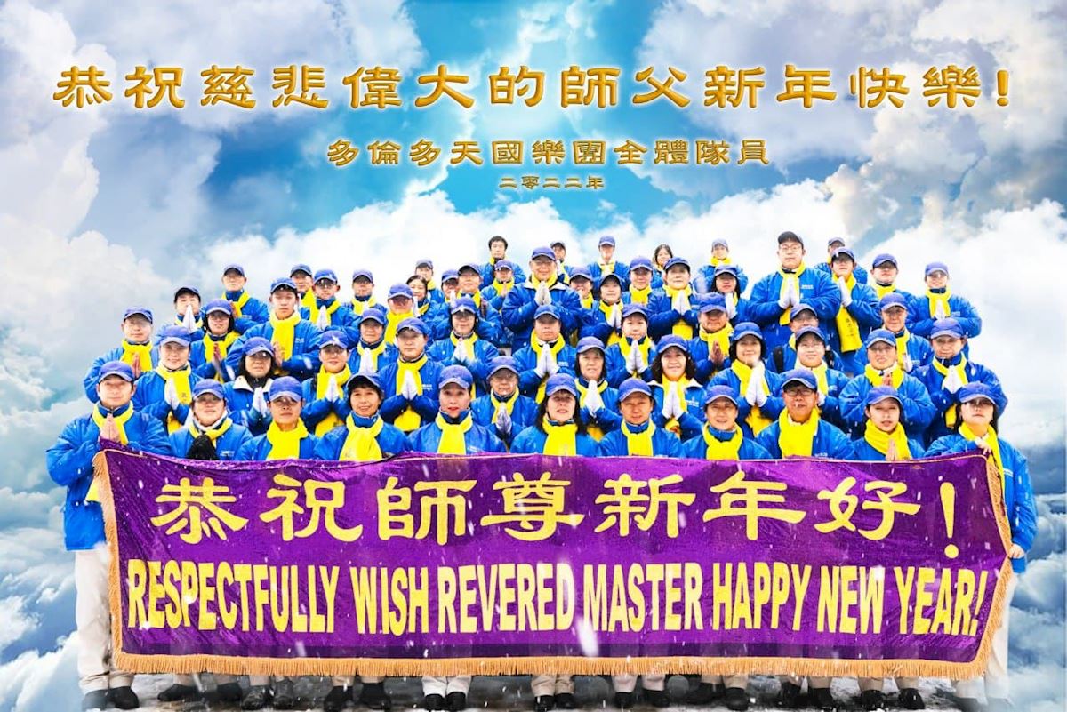 ![]() 图1:多伦多全体法轮功学员恭祝师父新年快乐! |