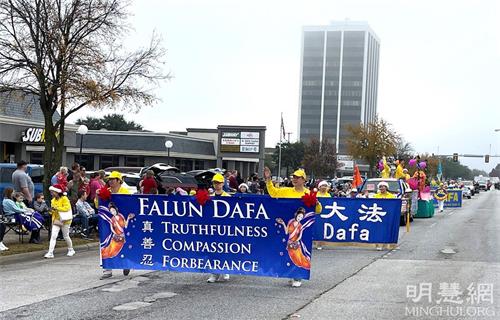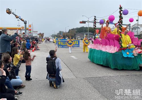 ![]() 图5~7:法轮功学员的队伍在李察逊市的圣诞大游行受到人们的欢迎 |