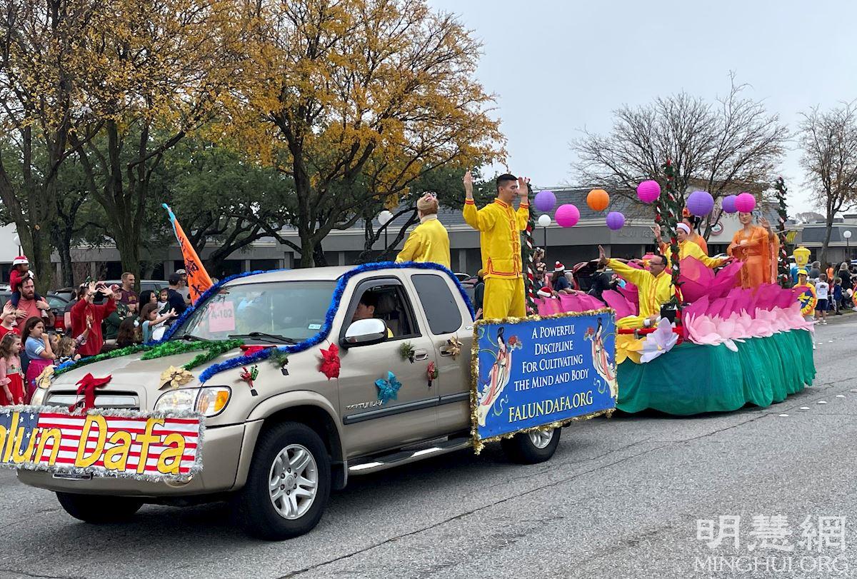 ![]() 图1~3:达拉斯地区法轮功学员参加李察逊市第四十九届圣诞大游行 |