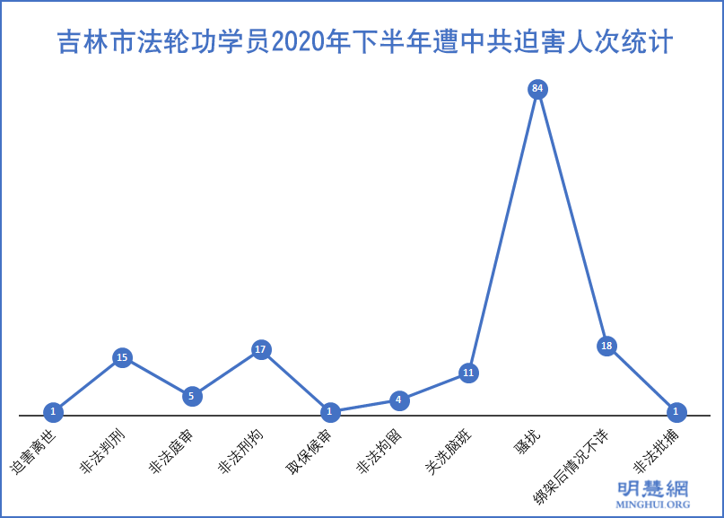图1:吉林市法轮功学员2020年下半年遭中共迫害人次统计