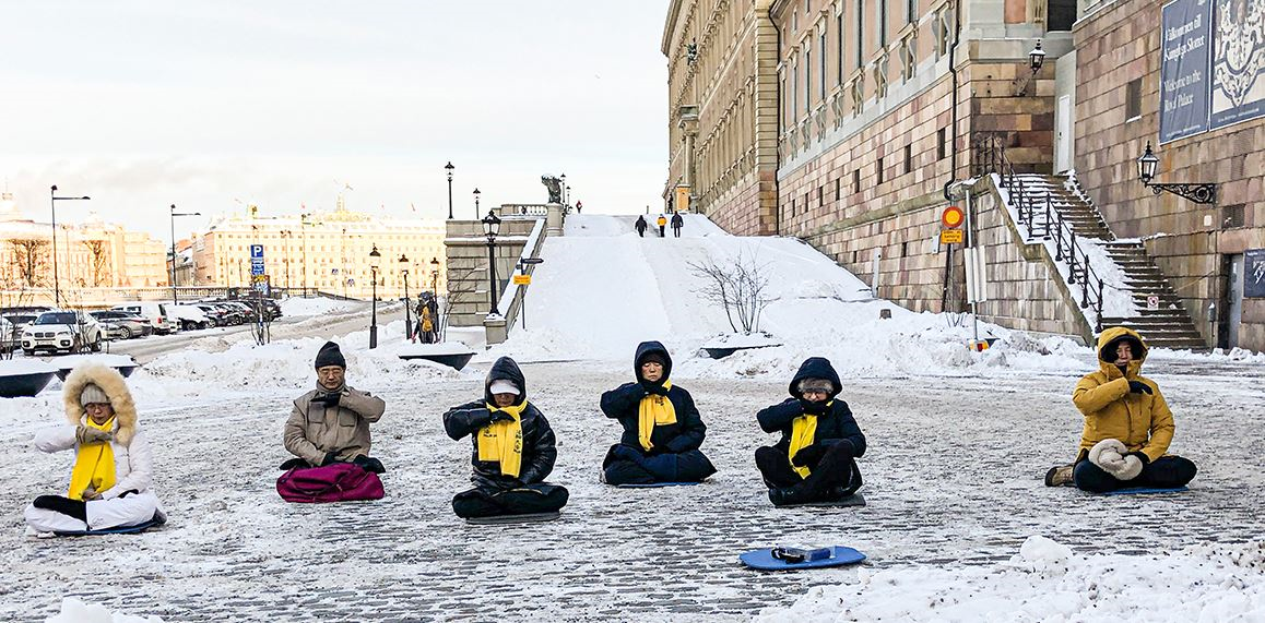 斯德哥尔摩这几天接连下雪,路上到处是积雪。国会大厦旁的讲真相点前也堆积着高高的雪堆。学员在保安的帮助下,很快把积雪清理出能摆放信息台、展板,学员炼功、发资料讲真相的场地。活动如往常一样,正常进行。