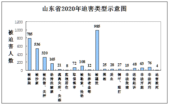 据明慧网不完全统计:二零二零年,山东省逾2000名法轮功学员受到了不同形式的迫害,比上一年(2019年)增加了44%。其中,4人被迫害致死、76人被非法判刑、785人被绑架、536人被非法抄家、985人被骚扰、21人被迫流离失所、165人被非法关洗脑班、72人被非法取保候审、108人被勒索罚款、12人被非法扣除养老金、工资、补助等。