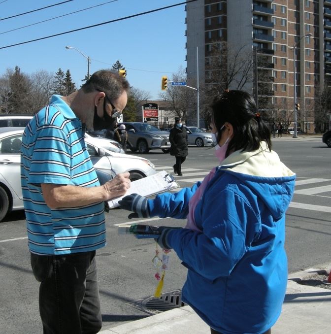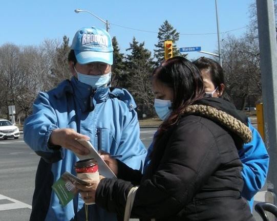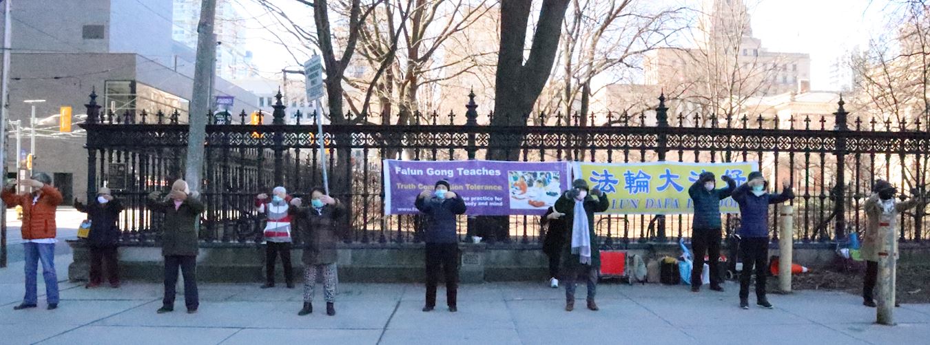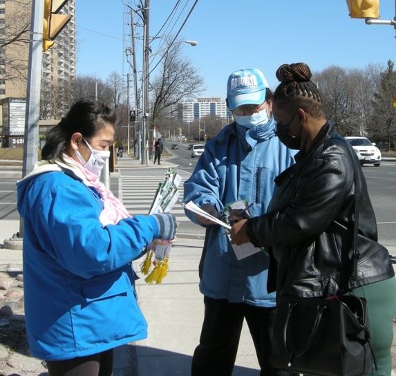 【明慧网二零二一年三月二十四日】(明慧多伦多记者站报道)二零二一年三月二十、二十一日的周末两天,加拿大多伦多法轮功学员在市里五个大炼功点进行户外集体炼功活动。一位市民说:“难以想象政府会对这群平和的人发起迫害。我希望尽我所能的帮助这群人,所以每次看到他们征签的时候我都会签上我的名字。”