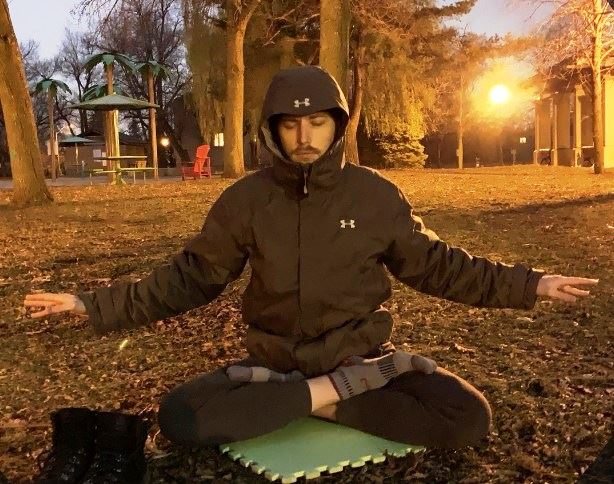 '图11:阿拉述(Arash)刚开始学炼静功。'