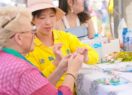 ![]() 图7~9:法轮功学员与民众互动,并传播真相。 |