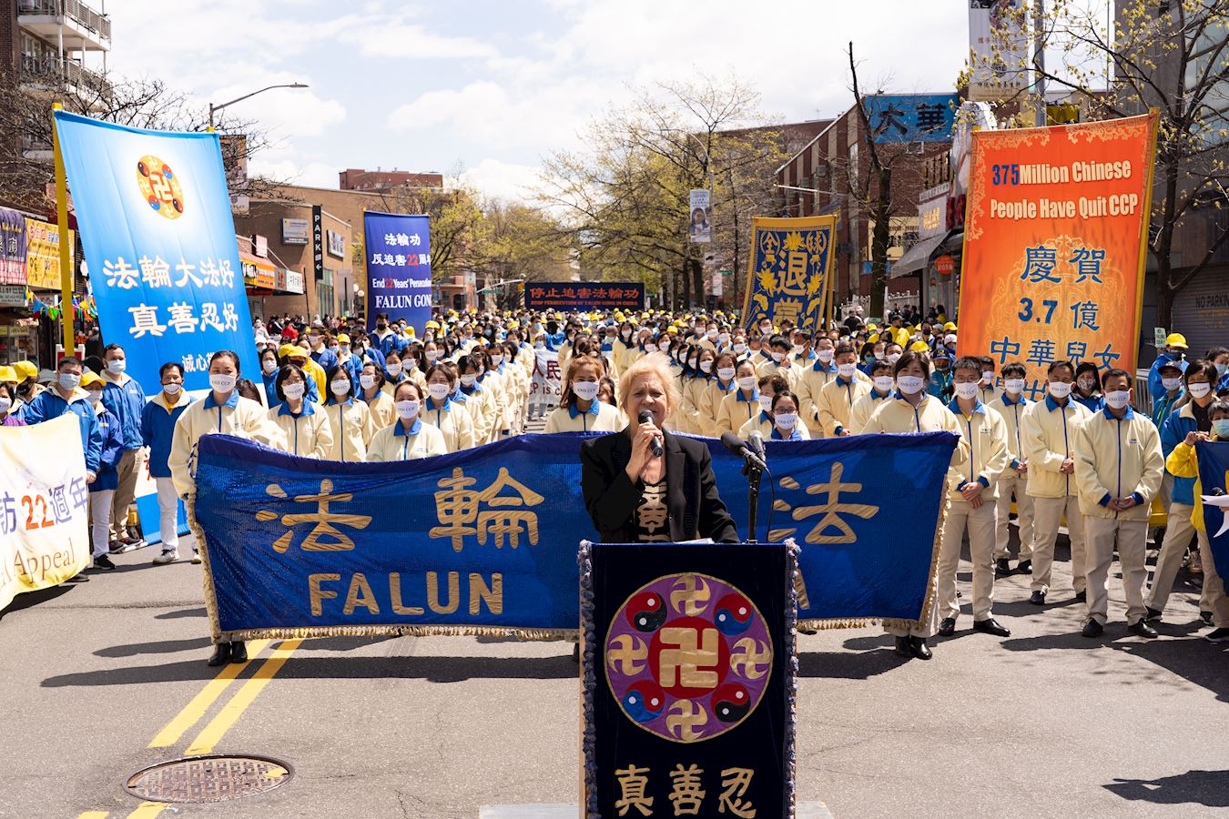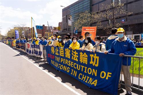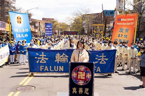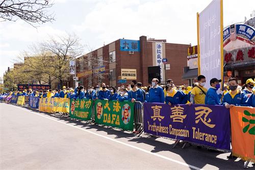 【明慧网二零二一年四月二十二日】二零二一年四月十八日,逾千名法轮功学员在游行结束后,在纽约最大的华人社区——法拉盛,继续举办集会,向世人讲述