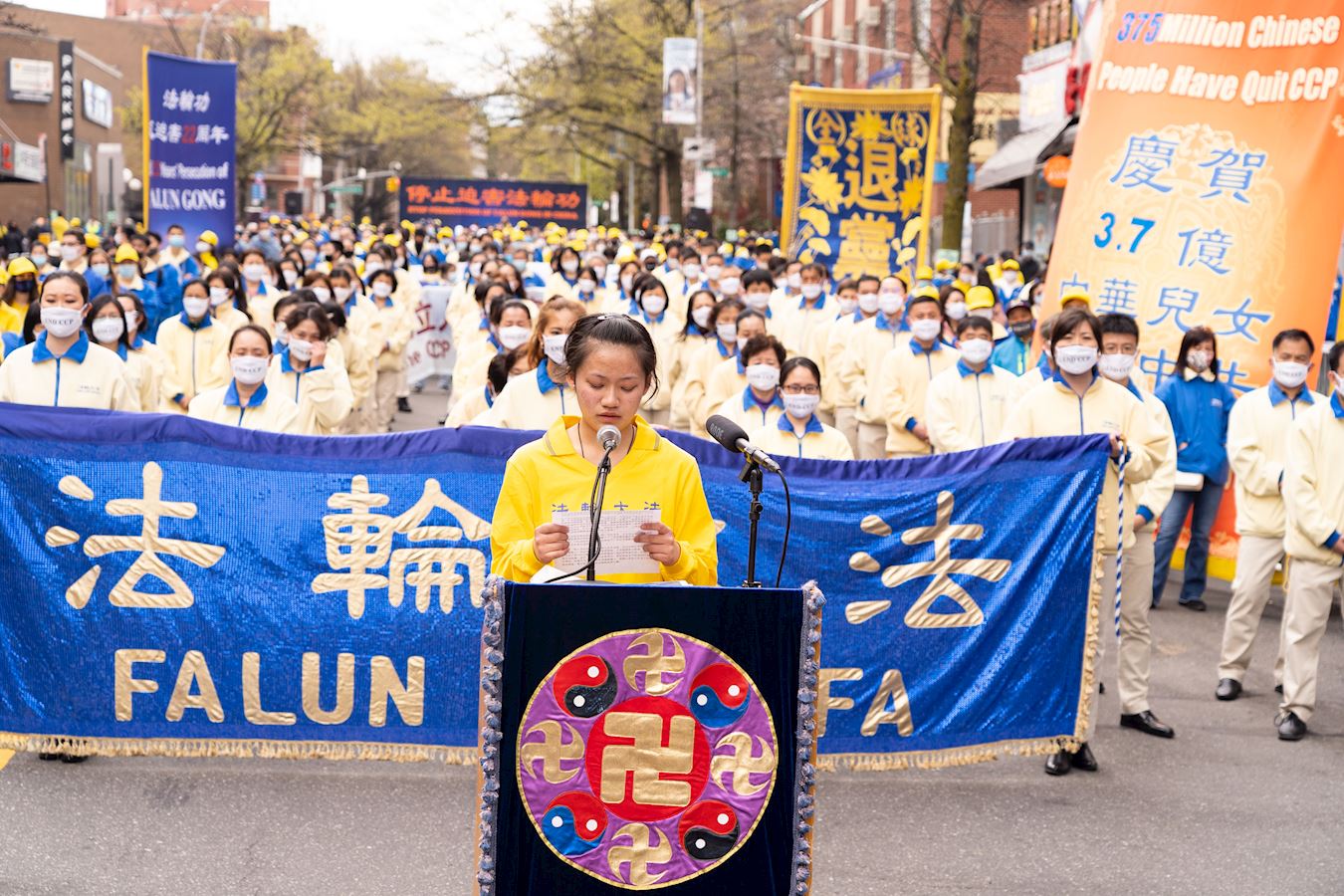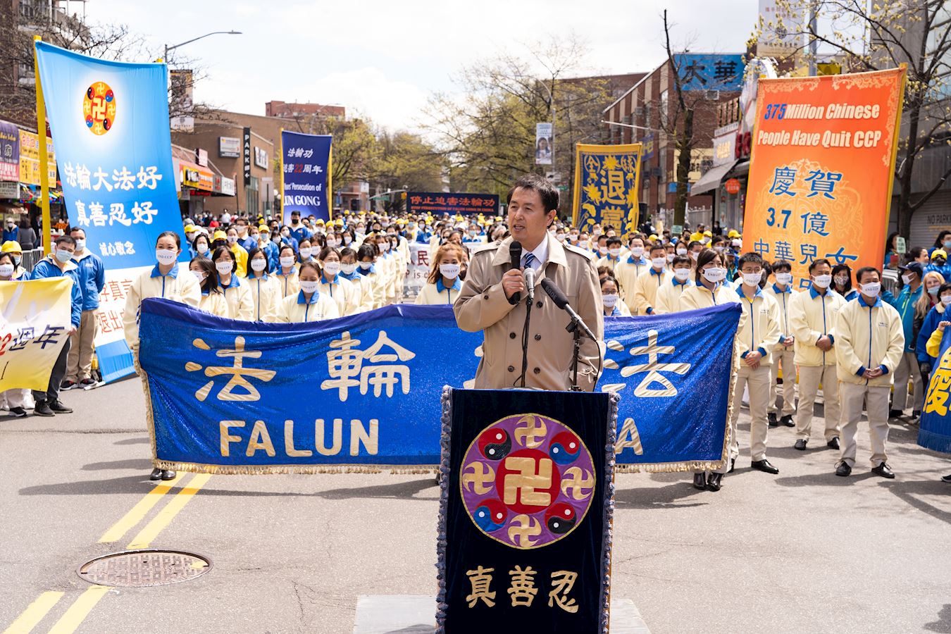 和平上访的真相,并呼吁世人了解法轮功真相,认清中共的邪恶,唾弃中共,三退保平安。 图1~5:二零二一年四月十八日,逾千名纽约法轮功学员在法拉盛举办纪念“四二五”和平上访二十二周年。 |