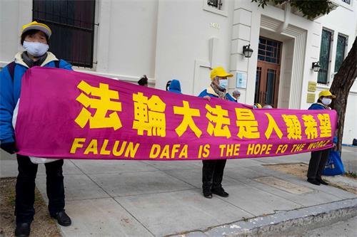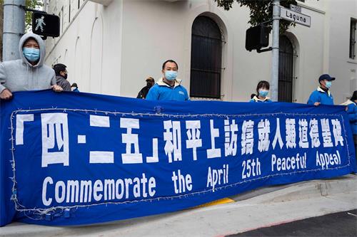 ![]() 图1~7:旧金山法轮功学员在中使馆前纪念“四·二五”和平上访二十二周年 |