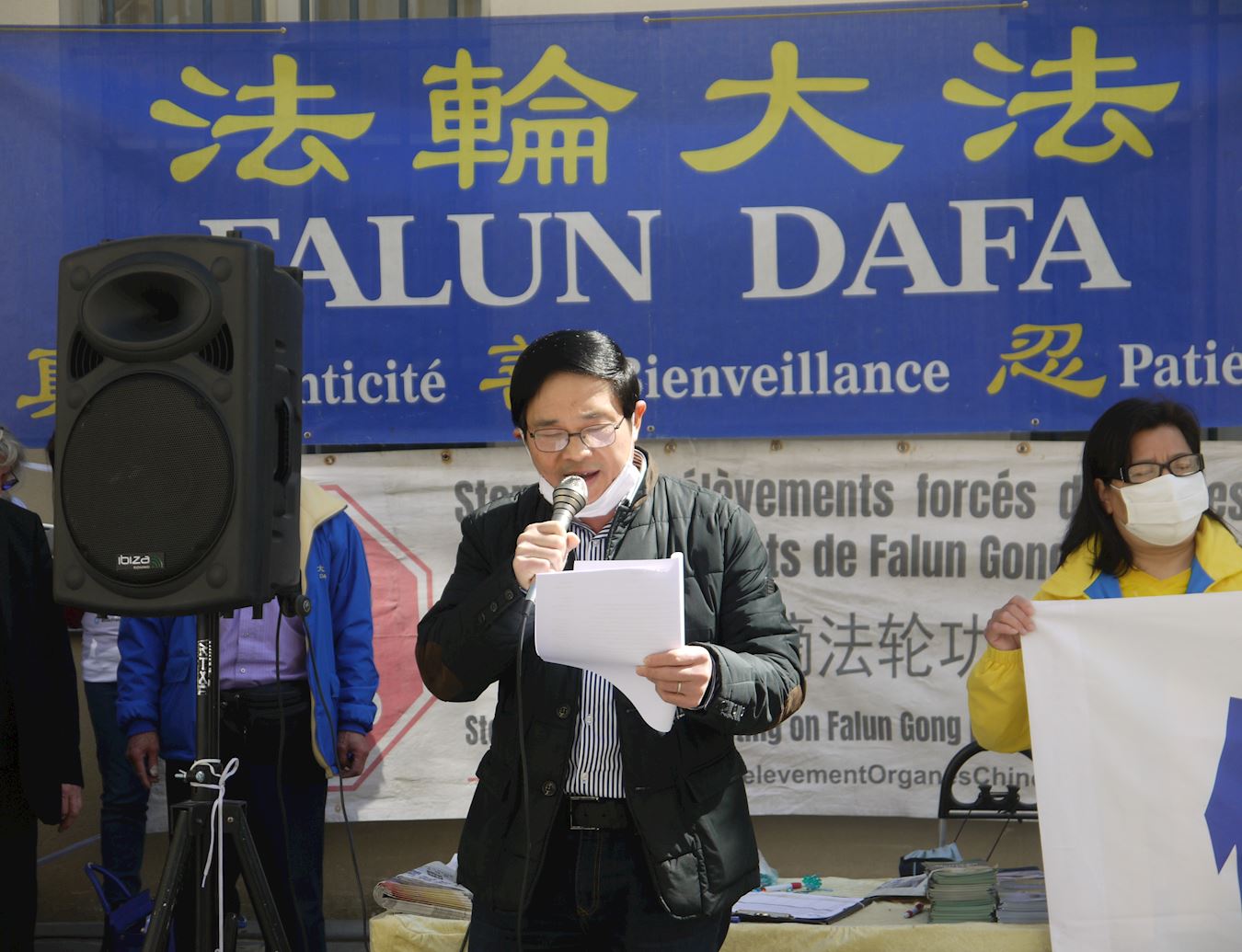 ![]() 图3:法国法轮大法学会主席唐汉龙先生呼吁人们认清中共,远离中共,选择正义和良知。 |