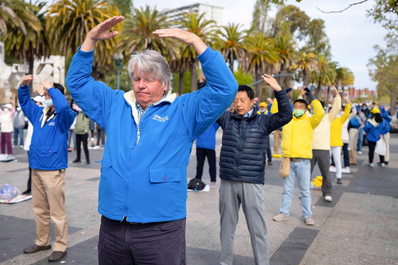 几位在集会上发言的学员分享了他们自己的修炼心得,并向现场观众介绍了什么是法轮功。已修炼法轮功二十多年的地质学家安迪·埃尔斯莫尔(Andy Ellsmore)说,修炼前,他吸毒、酗酒,有很多不好的恶习。修炼法轮功后,他发现身体变轻盈,心情也轻松起来,法轮功完全改变了他,让他远离了那些恶习。