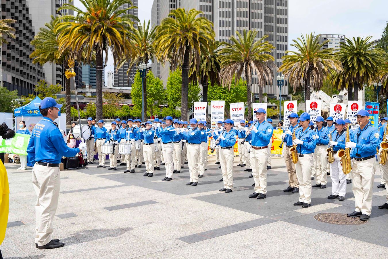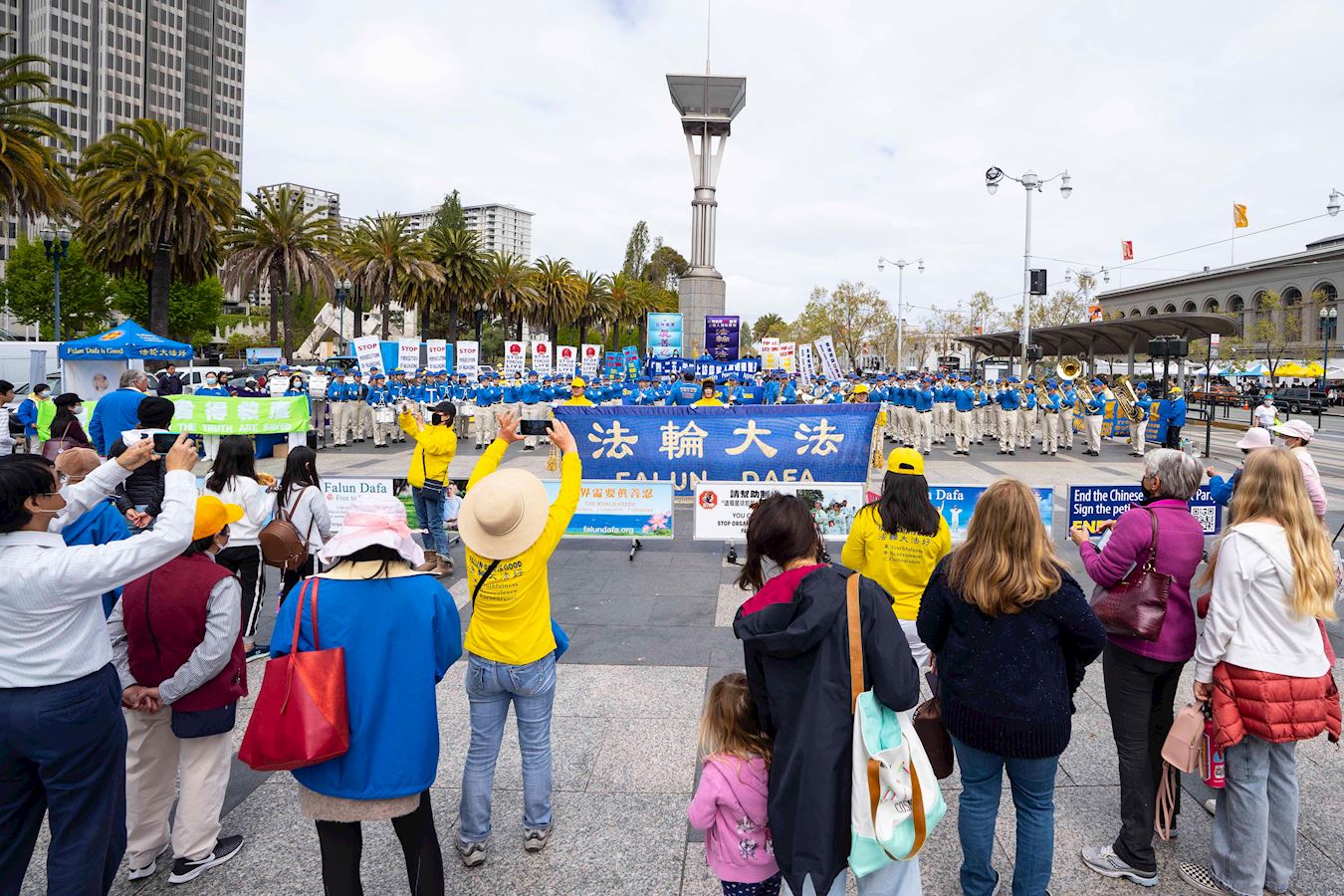 法轮功学员的活动吸引了大批民众观看。旧金山居民伊丽莎白(Elizebath)也被学员的活动吸引,她表示,尤其喜欢天国乐团的演奏。