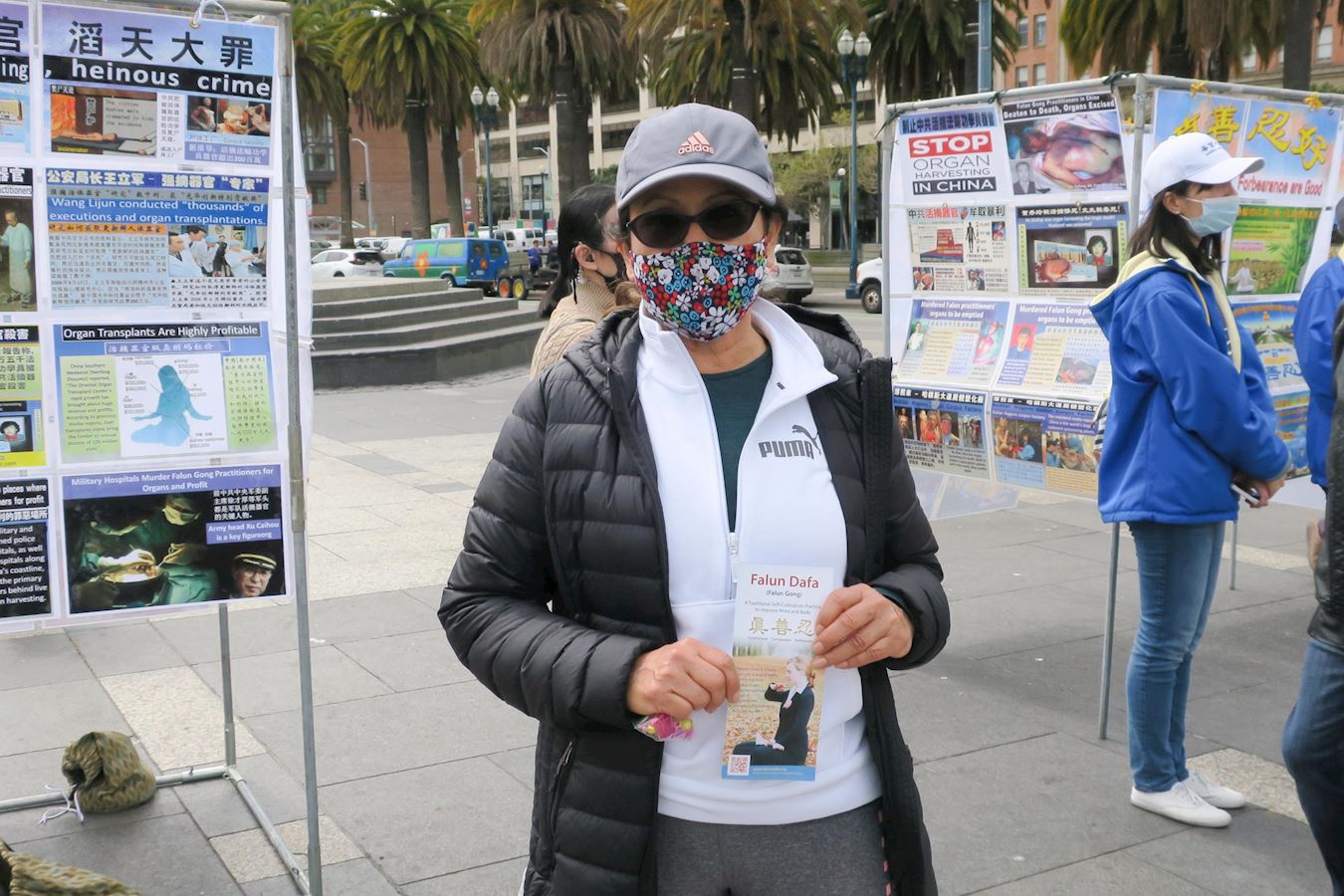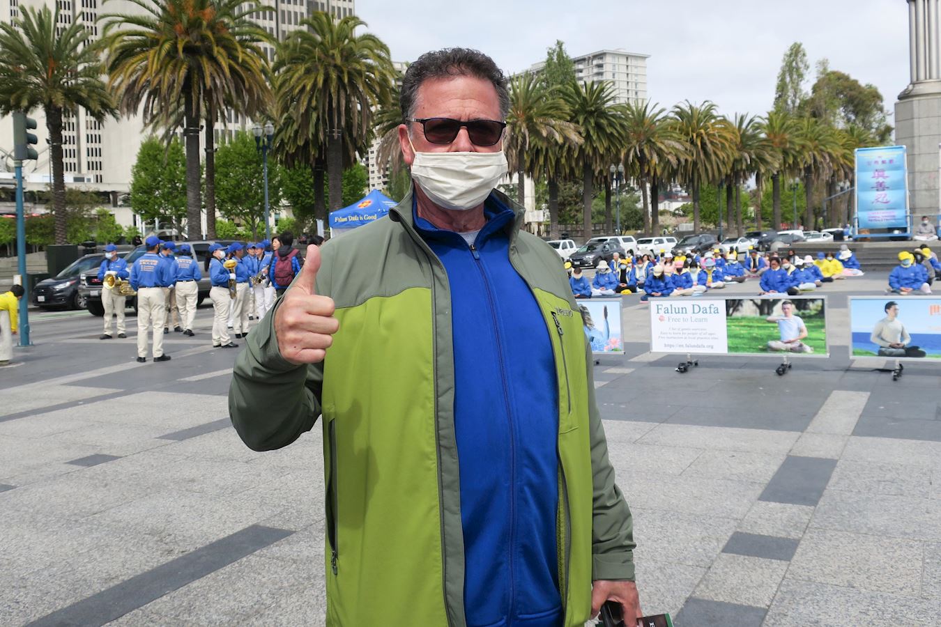 旅居美国四十多年的旧金山居民黄先生听说过法轮功,今天看到“四二五”集会非常惊讶,原来有这么多人在修炼法轮功。当听说法轮功在中国受迫害之事时,黄先生表示,“每个人都有信仰自由,政府无权干涉,对法轮功的迫害是非常不应该的。”当提及中共活摘法轮功学员器官之事,他气愤地表示,“非常地不人道也不应该,不能因为他们的理念不同,而强行摘取他们的器官,太邪恶了,文明国家根本不可能做出这种事情。”