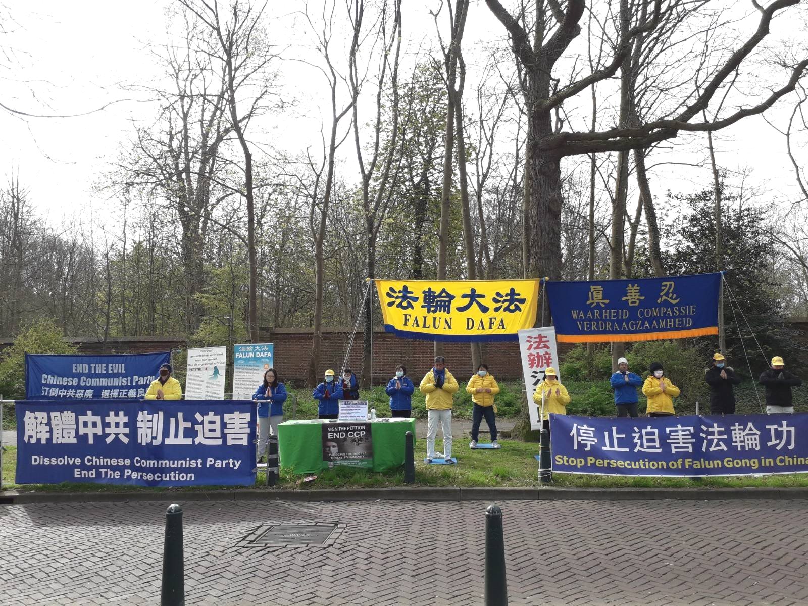 进入四月以来,荷兰疫情加重。尽管如此,荷兰政府一如既往地予以支持,批准了荷兰法轮大法学会抗议活动的申请。与往年不同的是,荷兰政府还批准了6人可以到使馆的正门举行抗议活动。为了安全,总人数限制在30人,并要求保持1.5米的安全距离。
