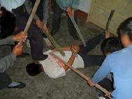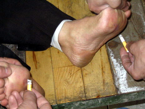 二零零二年七月,黄福堂与其他法轮功学员交流修炼体会时,山东省淄博市张店区湖里派出所绑架了黄福堂,抢走他衣袋里的钱。一个姓张的、一个姓邱的,把黄福堂打成重伤,十多个警察酷刑折磨他,把他关押到淄博市看守所。在看守所里,恶人用烟头烧他的脚,烧身上,用荆棘扎,这样折磨了一个多月。十个人轮班看着黄福堂不让睡觉,黄福堂被打的全身肿起,疼痛难忍。他又被劳教三年。