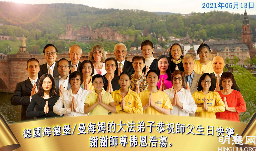 ![]() 图1:德国海德堡、曼海姆大法弟子恭祝师父生日快乐,感谢师尊佛恩浩荡。 |