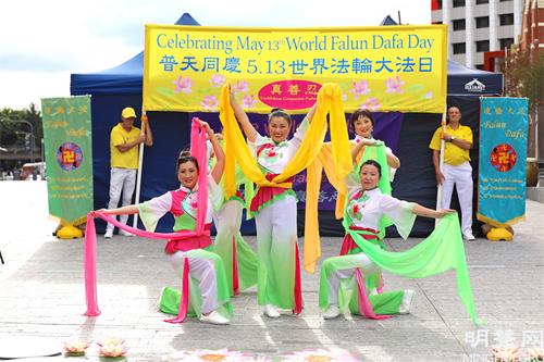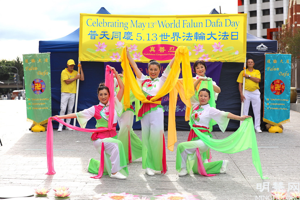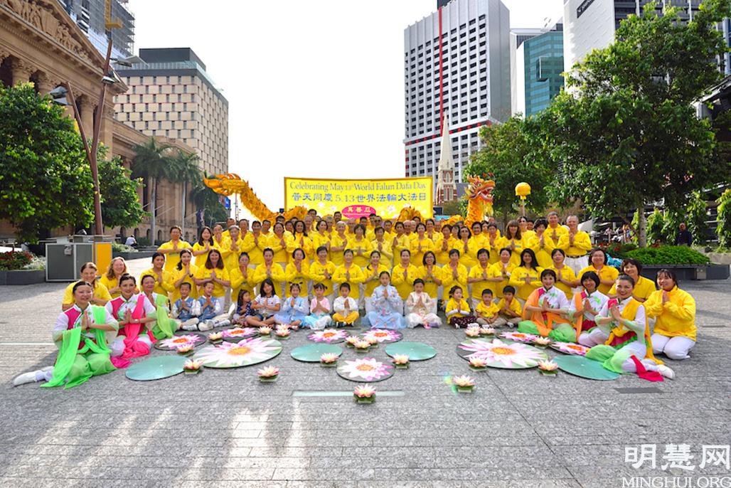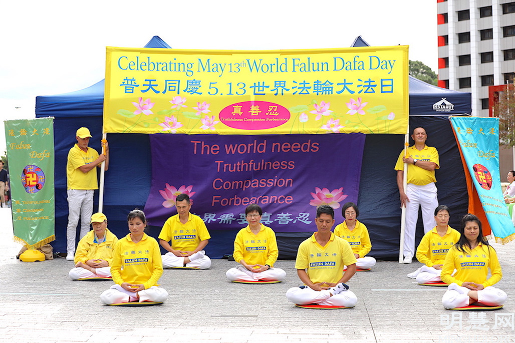 ![]() 图1:二零二一年五月八日,昆士兰法轮功学员齐聚在市中心的乔治国王广场(King George Square)世界法轮大法日庆典上,双手合十,恭祝慈悲伟大的李洪志师父七十华诞! |