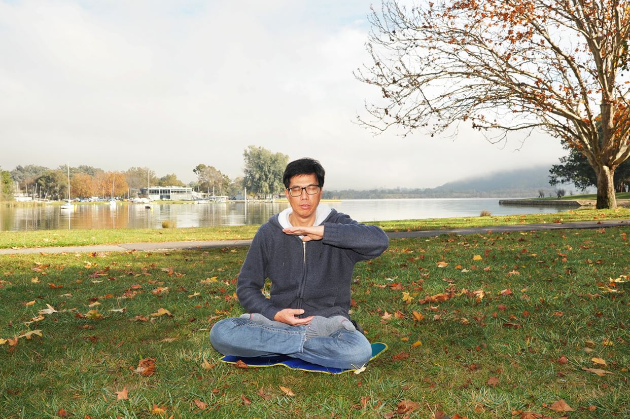 ![]() 图3:堪培拉学员李健荣在公园炼法轮功第五套功法——神通加持法。 |