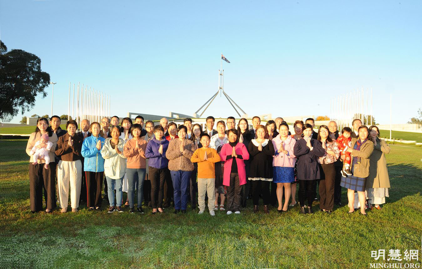 ![]() 图1:堪培拉法轮功学员在澳洲国会大夏前,恭祝师尊生日快乐! |