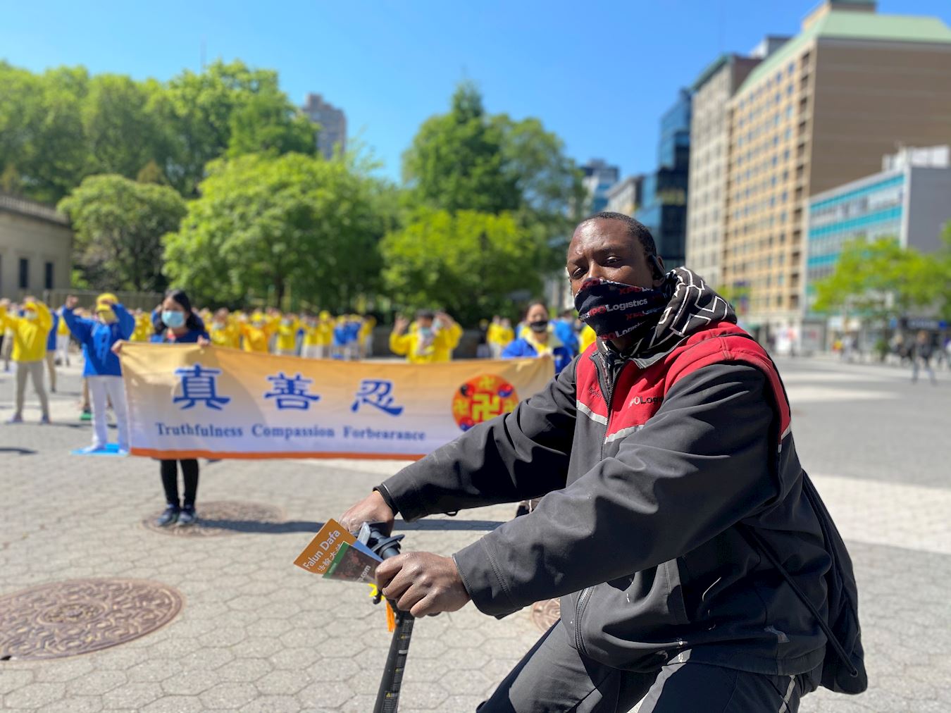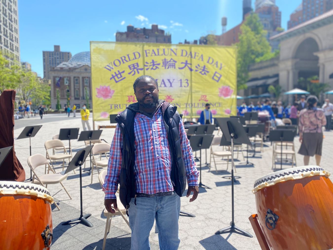在纽约市居住的加拿大画商丹尼尔(Emmanuel Daniel)几年前就在联合广场碰到过法轮功学员。去年疫情期间,他到附近的麦迪逊公园炼功点认真地学功。他儿时受伤身体疼痛,找了三个专业医生都没有看好,而炼功后很快痊愈了,他表示自己的道德水平也得到了空前的提高。