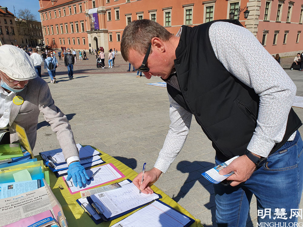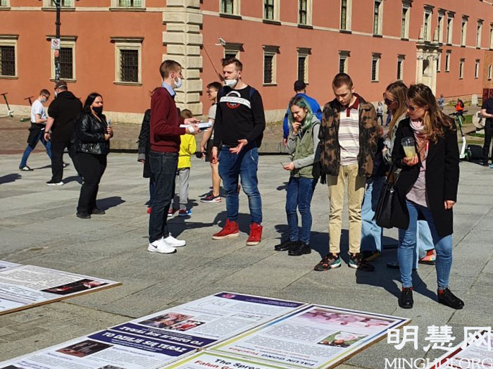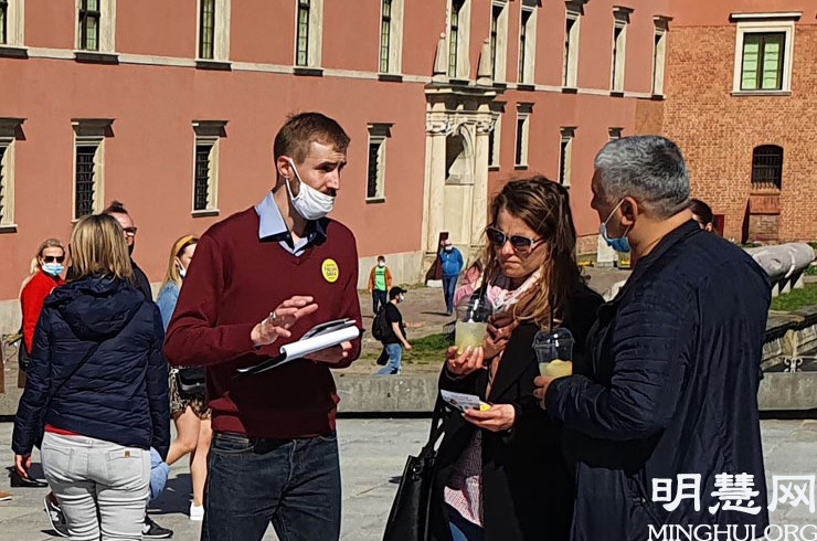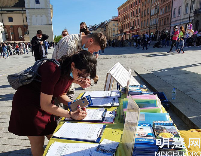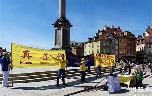 下午两点,法轮功学员来到华沙老城集体炼功并举办征签和讲真相活动,收到众多民众的响应和支持。