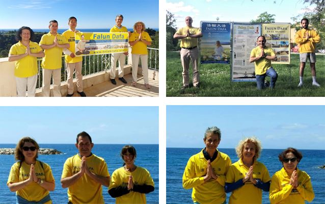 '图1~3:西班牙学员各地学员庆祝世界法轮大法日并恭祝师尊生日快乐'