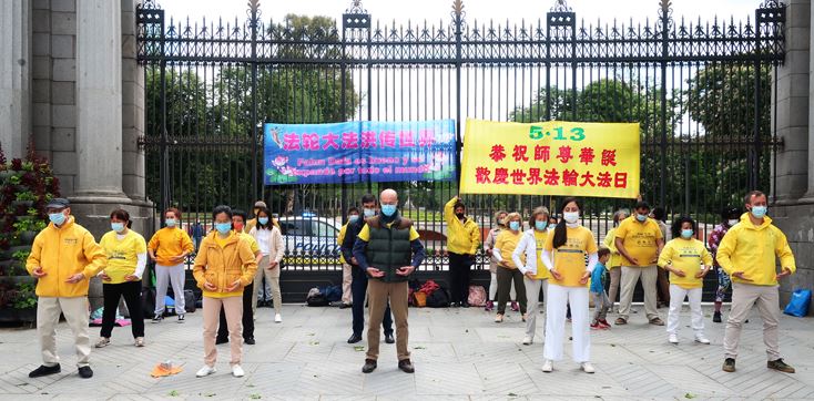 【明慧网二零二一年五月十四日】二零二一年五月九日,西班牙部份法轮功学员来到马德里著名的皇家公园(Retiro),庆祝第22届世界法轮大法日,庆祝法轮大法洪传世界二十九周年,并恭贺师尊七十华诞暨。