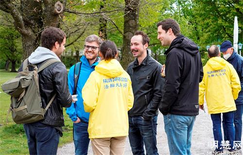 Kocht和Torki是慕尼黑大学生,他们偶然路过,看到学员庆祝法轮大法日的活动,觉得非常喜庆。这是他们第一次听说法轮功,当得知以真、善、忍为修炼原则的法轮功学员在中国被中共血腥迫害二十多年,都觉得不可思议。