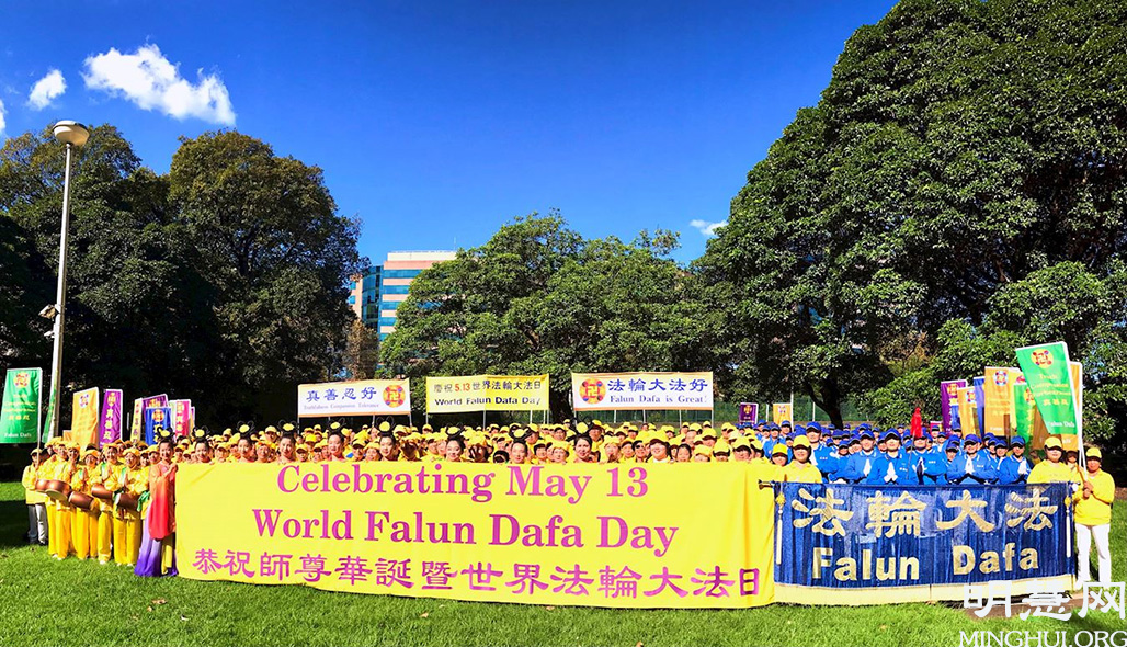 ![]() 图1:二零二一年五月十三日,法轮功学员齐聚悉尼的贝尔莫公园(Belmore Park),庆祝世界法轮大法日,恭祝慈悲伟大的李洪志师父七十华诞! |