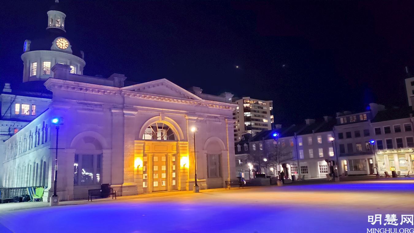 ![]() 图5:金斯敦市(Kingston)五月十三日晚市政厅亮彩灯庆祝世界法轮大法日。 |