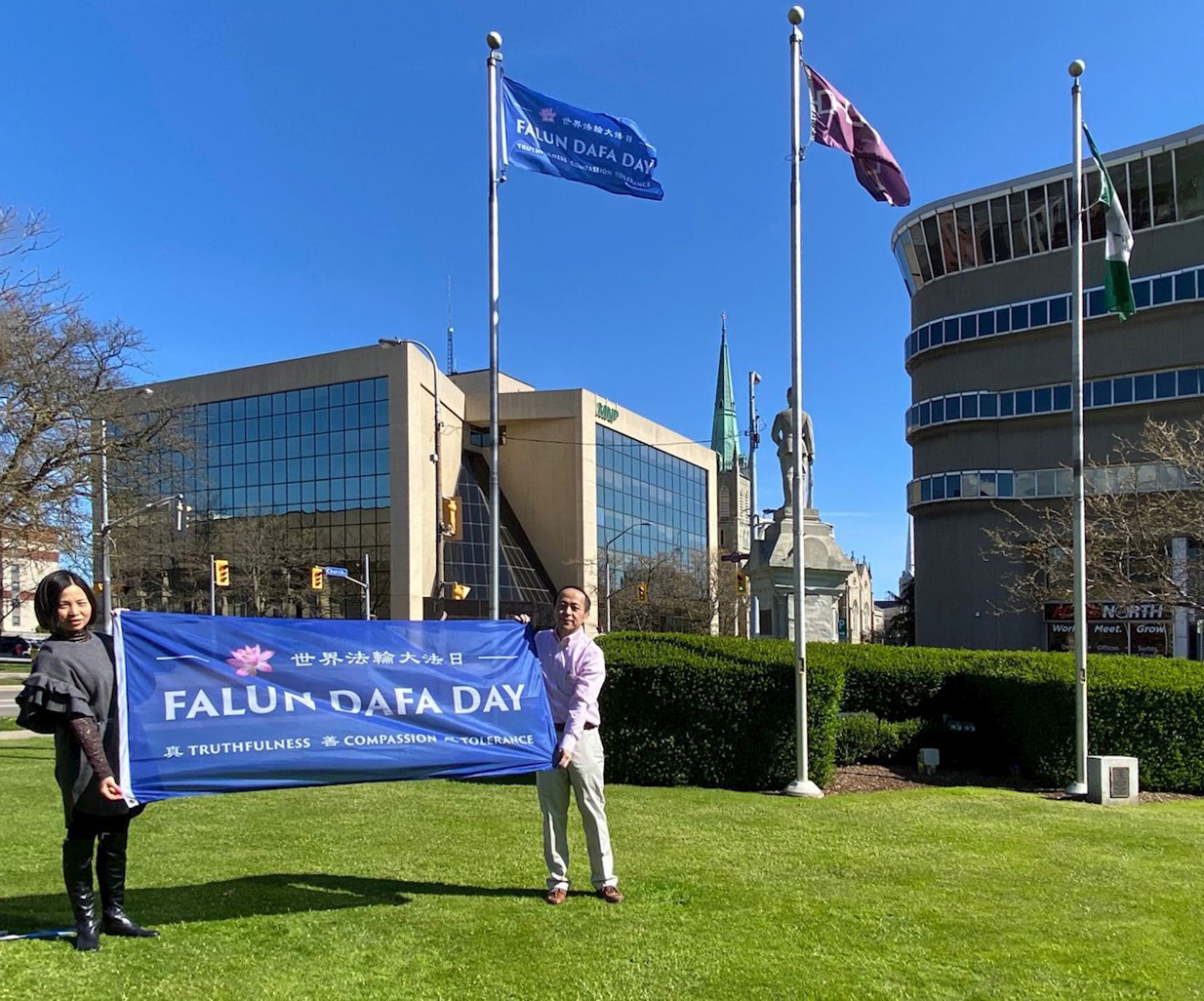 二零二一年的世界大法日,加拿大有近十个城、镇政府用一种特别的方式—升旗或地标建筑亮彩灯,来庆祝法轮大法弘传29周年,继第一个城市尼亚加拉瀑布升旗后,五月十三日、五月十日和十一日,在安大略省有四个城市金斯敦市(Kingston)、圣凯瑟琳市(St. Catharine)、奥里利亚市(Orillia)和奥兰治维尔镇分别升起了“世界法轮大法日”的旗帜,并发来褒奖,有的还在市政厅亮彩灯祝贺。