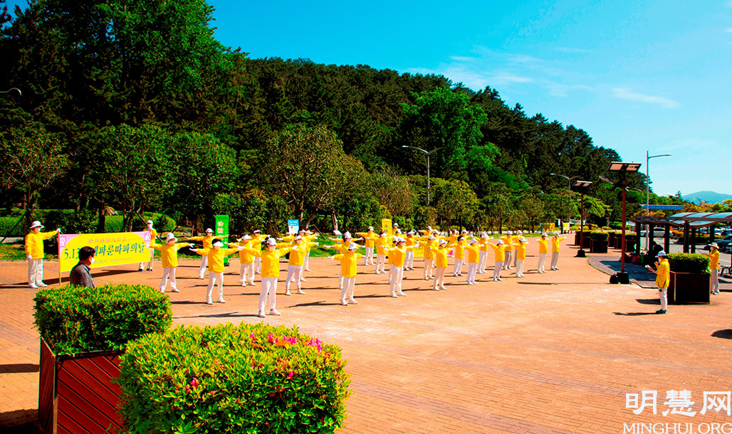 图10:釜山学员集体炼功庆祝世界法轮大法日