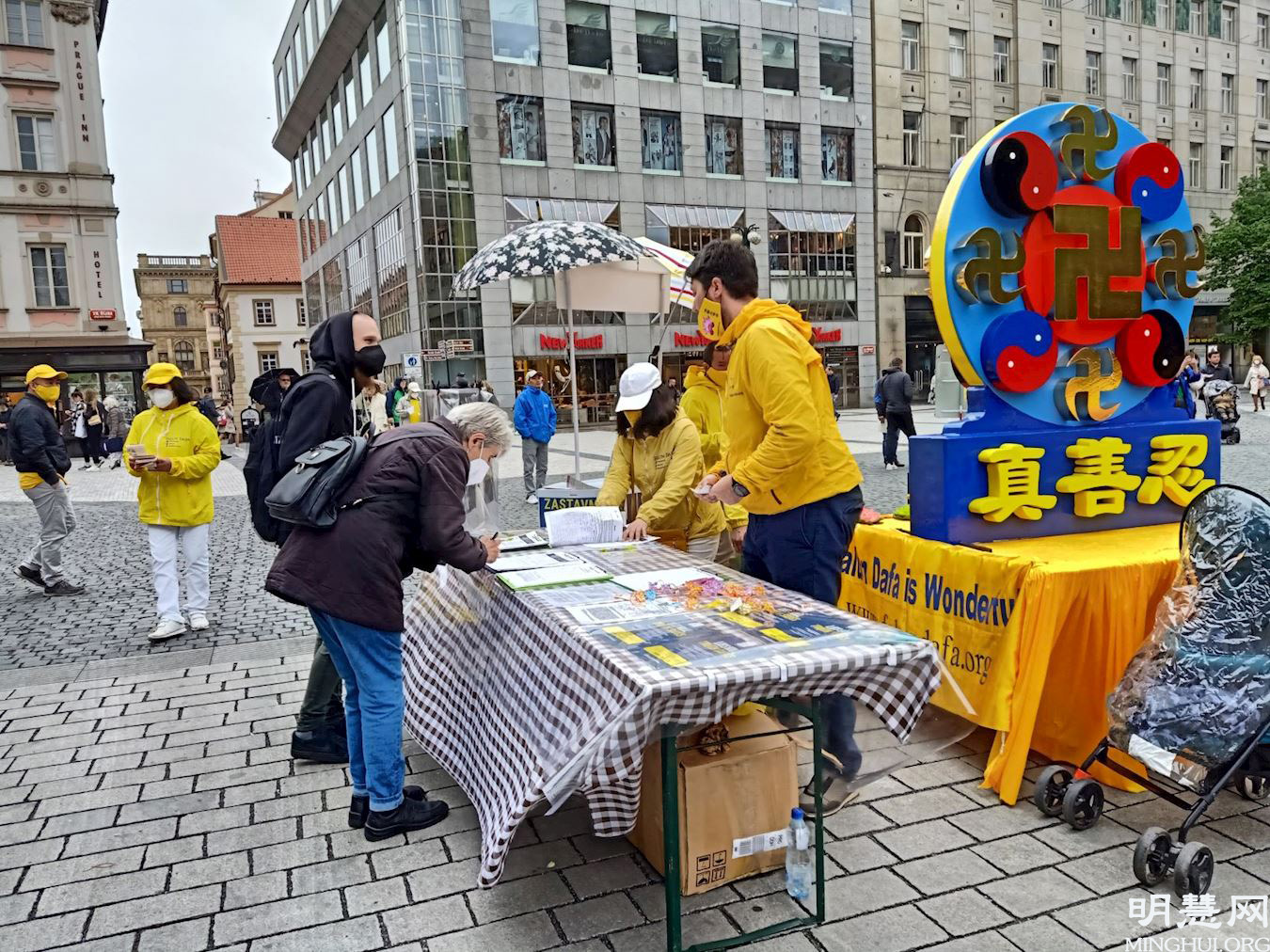 ![]() 图1:二零二一年五月十三日,捷克法轮功学员在布拉格市中心举办活动,庆祝世界法轮大法日,祝愿师尊华诞快乐,同时感恩师尊的慈悲救度。 |