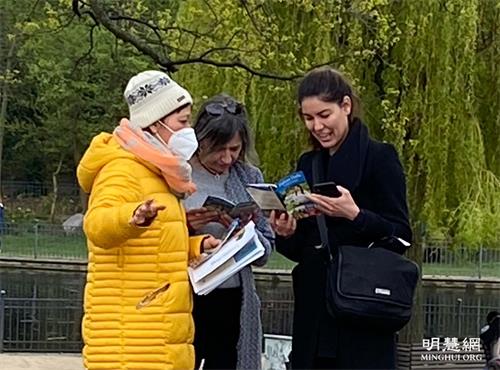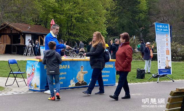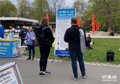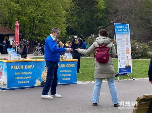![]() 图2~7:二零二一年五月一日,民众在腓特烈斯海恩人民公园的北侧了解中共迫害法轮功的真相,并且在征签表上签字支持反迫害。 |