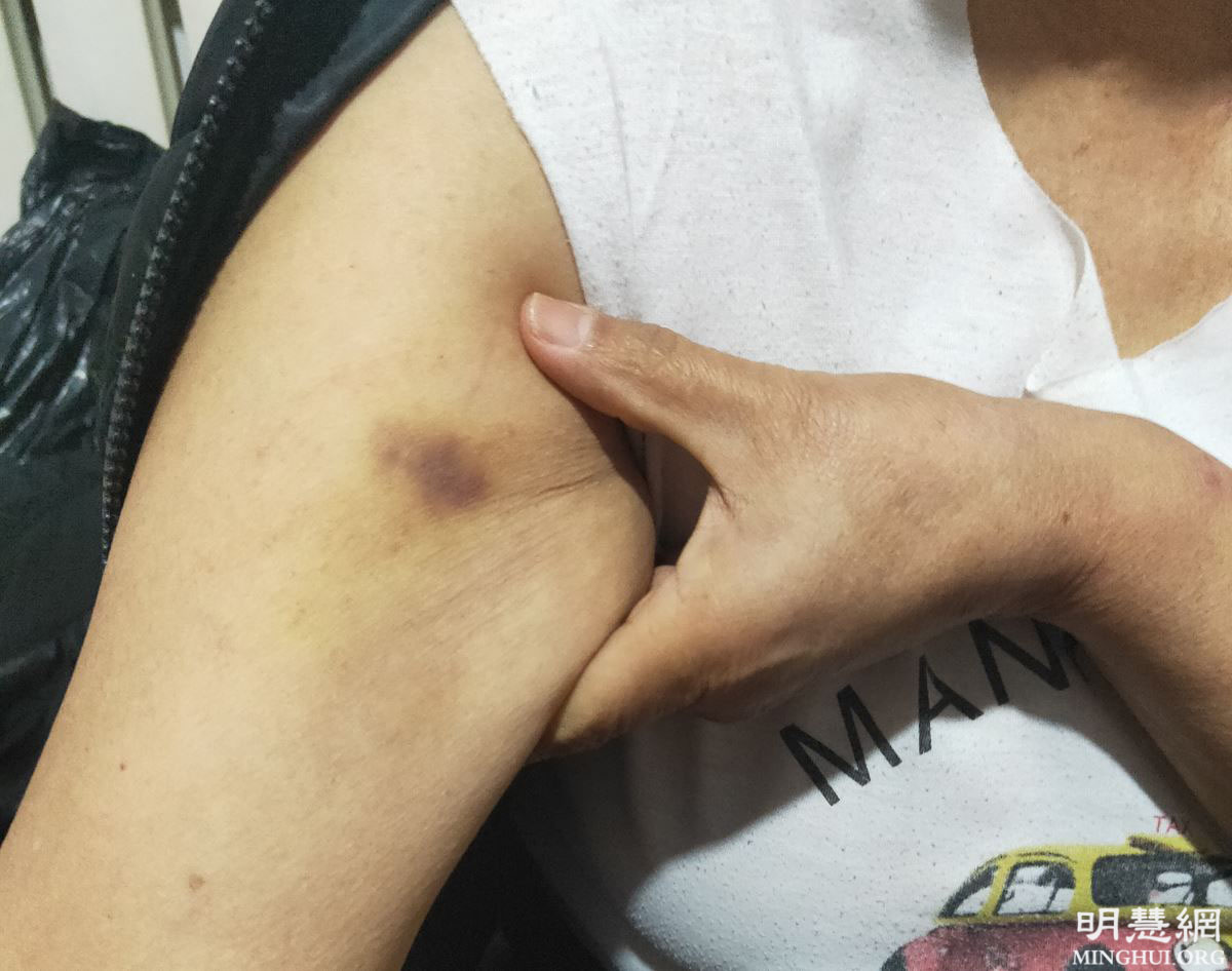 ![]() 图2:二零二一年三月十九日警察强迫刘英杰按手印造成胳膊淤青 |
