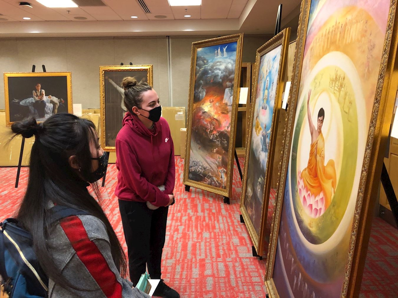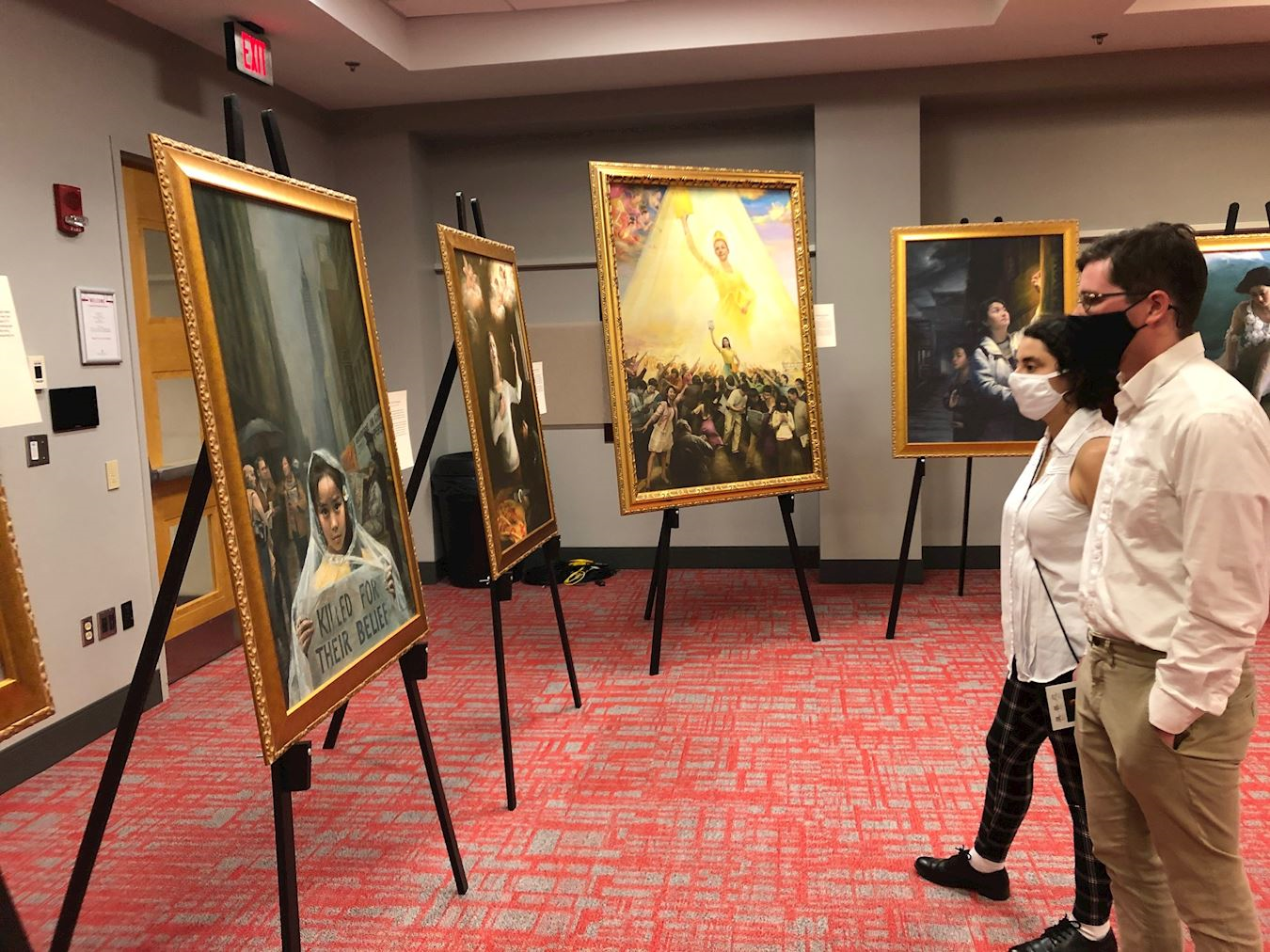 这次展出虽然只有短短五天, 真实动人的画作不但吸引来往有缘人,学生、教授、职员,还有一些当地居民看到画展海报,决定前来欣赏的。副州长夫人缇娜·赫斯特德(Tina Husted)也和朋友一起来观看了画展。在疫情渐渐趋缓,一些活动陆续开放之际,真善忍美展的消息带给人们了希望和美好。