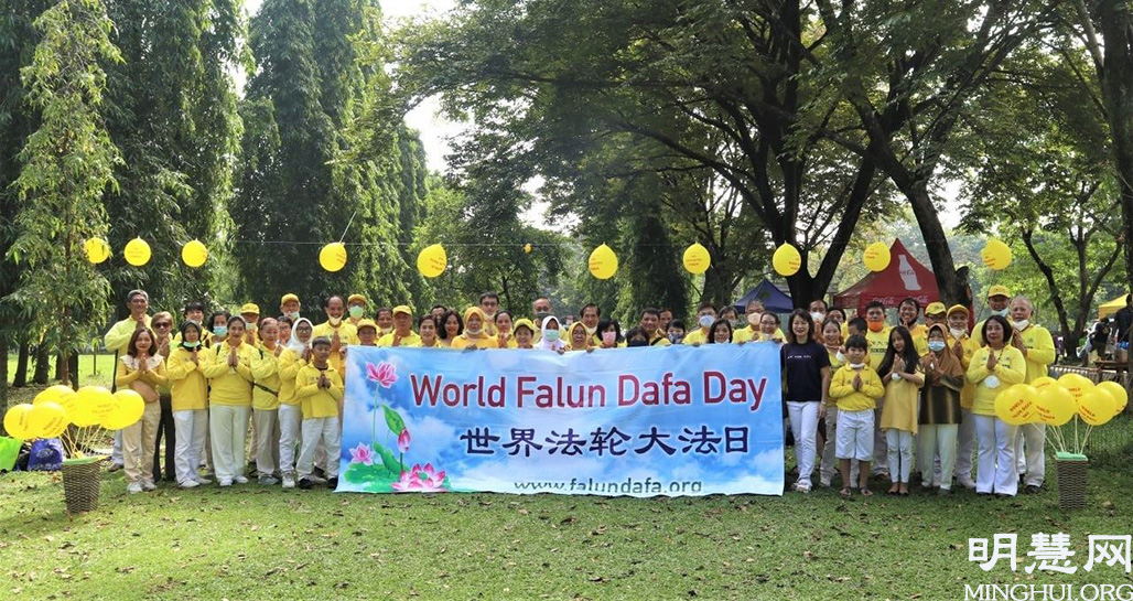 ![]() 图1:法轮功学员在雅加达东部季布布尔(Cibubur)营地集体炼功 |
