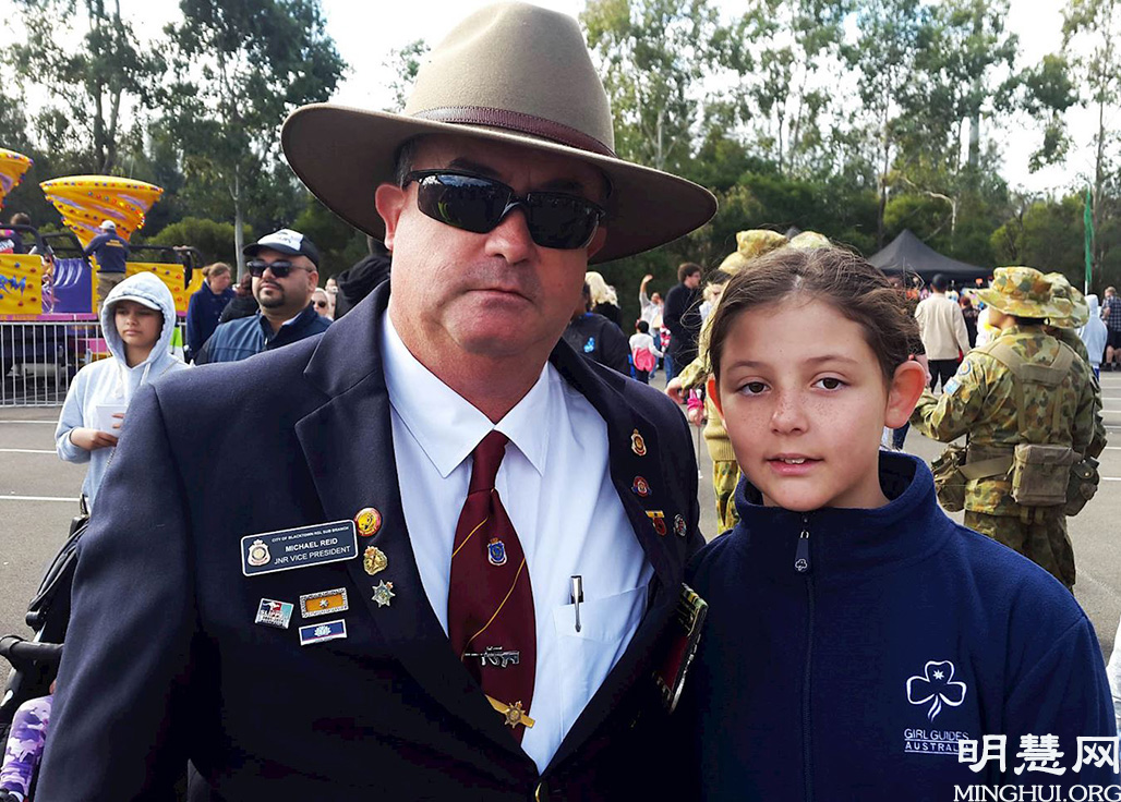 ![]() 图5:澳大利亚退伍和服务联盟黑镇分部副会长迈克尔·瑞德(Michael Reid )和女儿都表示喜欢天国乐团演奏的乐曲,并说:“他们一直是很棒的。” |