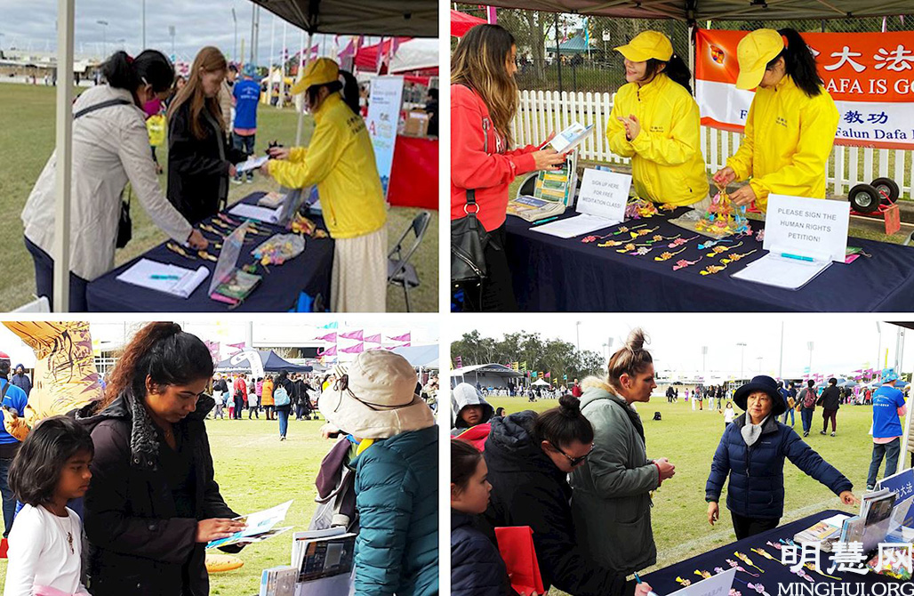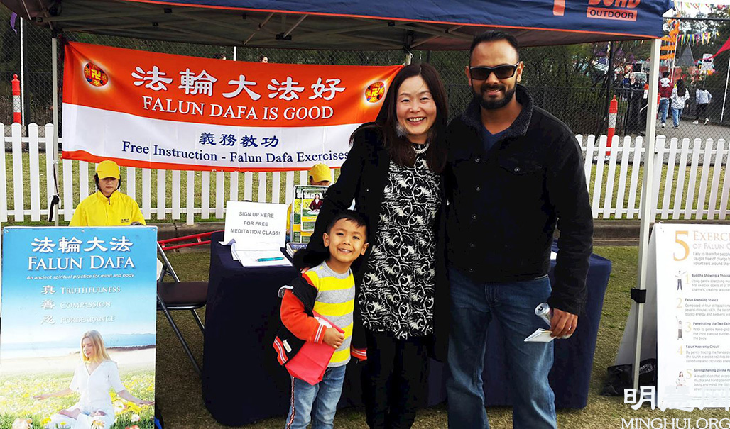 看到法轮功学员的展位,沙琳·麦卡德尔(Sharyn Mcardle)女士召唤身边朋友签名支持法轮功。她表示,自己是几年前从一位亚裔朋友那里听说到法轮功,以及得知中共迫害法轮功的真相,她说:“我希望中国法轮功学员能象我们这里一样,每个人享有人权和信仰自由。我支持法轮功,期望真、善、忍带给世界更多美好。”