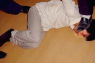 二零零二年十一月九日罗晓星被劫持到攀枝花市弯腰树看守所,二零零二年十一月十八日左右被市国安局外提审讯,在市仁和区“沁园山庄”内遭到他们刑讯逼供。警察用麻绳将罗晓星双手背吊在铁窗上,这次他们嫌绳子捆绑不便,用的是三副手铐,效仿历史上把耶稣钉在十字架上,残暴的将罗晓星反手吊于铁窗上,从深夜一点左右一直吊到凌晨五点左右。在四个多小时的迫害期间,他们不断的提升吊罗晓星的高度,又是扇耳光、往头上淋水、不准闭眼,一边看时间,一边用手故意捏罗晓星肿痛的手腕,用手扣喉管,甚至还耍流氓,用筷子挑开衣服,在肚皮上用筷子来回戳。