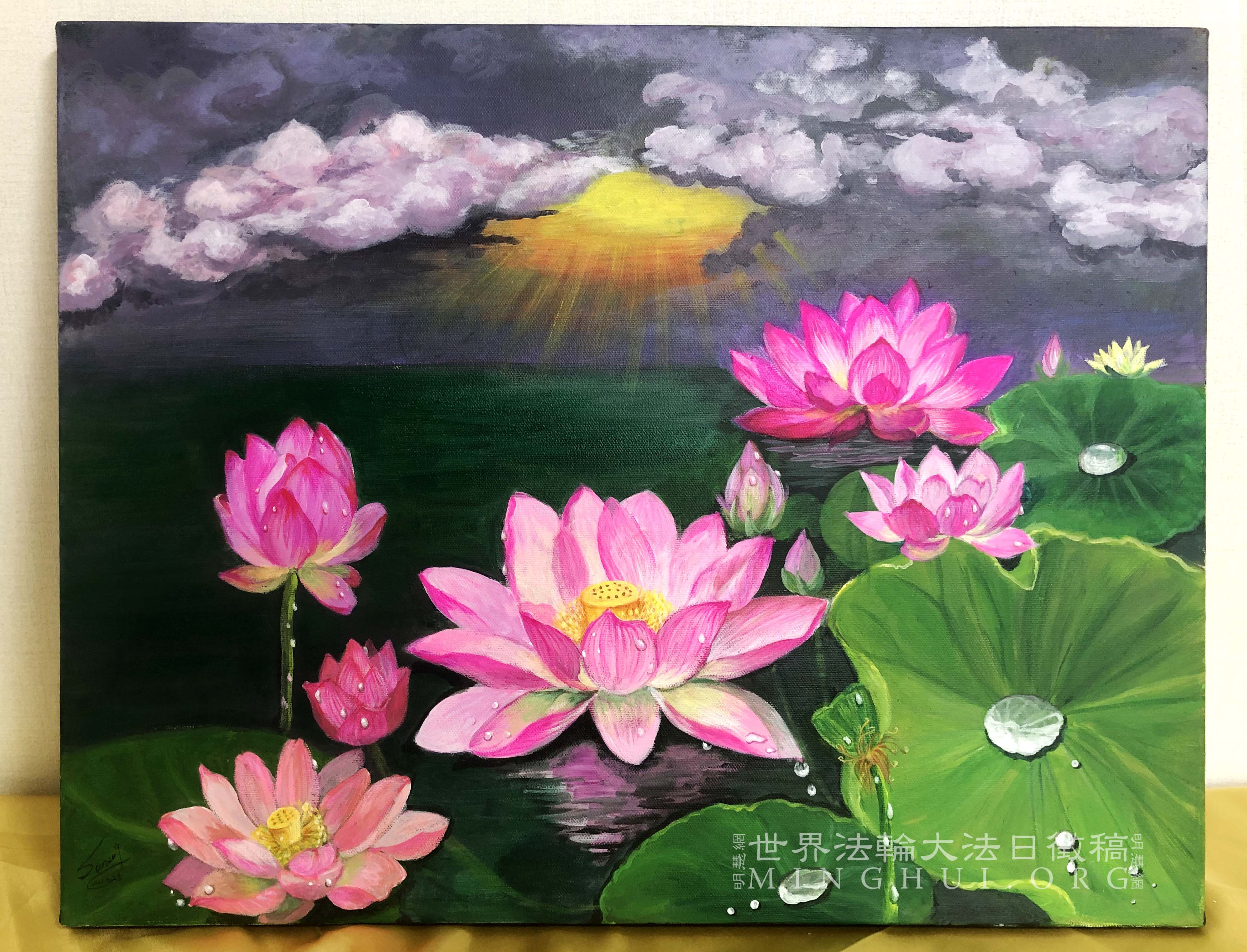 丙烯画:浊世净莲