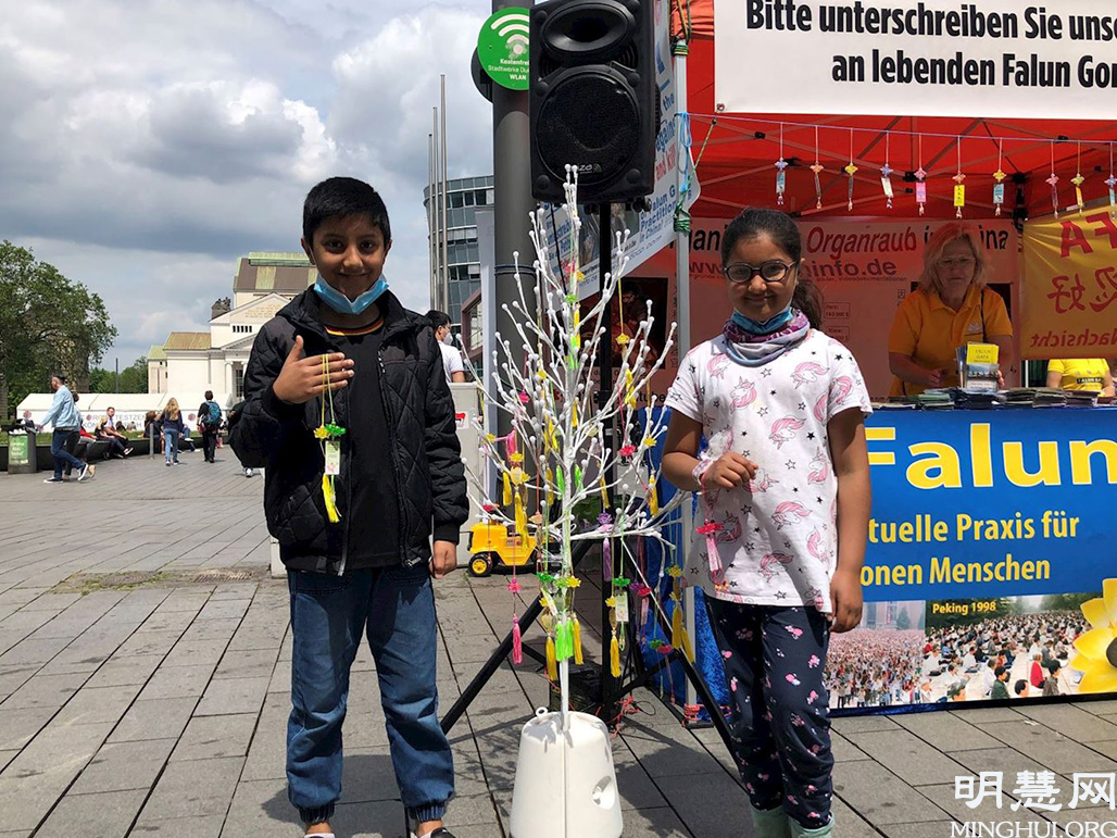 类似的活动在当地已经举办了多年,很多民众因此听说了法轮功。住在杜伊斯堡的梅尔芙(Merve)就是其中之一。她告诉学员:“我在两年前看到你们的活动,当时就签名反迫害。回家后,我在网上找到了法轮大法的相关信息。现在,我也开始读《转法轮》这本书了。”梅尔芙还将了解到的法轮功真相分享给姐姐和两个小外甥女。当天她们在真相点附近待了两个多小时。两个外甥女几乎一直都在学员身边,学做炼功动作。她的姐姐很高兴自己的孩子对大法的功法如此感兴趣。她和梅尔芙不时纠正孩子们的动作,还鼓励她们坚持做完第五套功法。