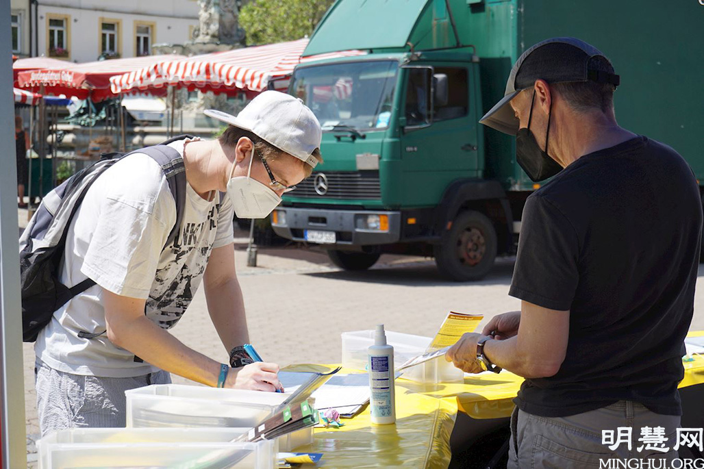 【明慧网二零二一年六月二十二日】二零二一年六月十九日,德国巴伐利亚州弗兰肯地区的部份法轮功学员们,在爱尔朗根市举办信息日,传播法轮功真相,同时向民众征集签名制止迫害。过往的爱尔朗根市民纷纷签名支持。