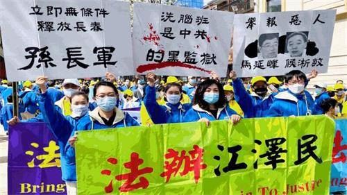 日本当地法轮功学员也到了中共大使馆前抗议,与付伟彤一起呼吁停止这场长达22年的残酷迫害,释放被非法关押的学员。