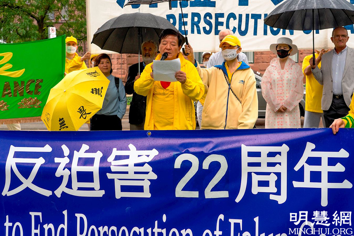 前加拿大国会议员瓦拉兹瓦夫(Lizon Wladslaw)在发言中说,他在一个东欧共产国家长大。当时,他们得到西欧、加拿大、美国等西方国家的帮助,“他们也是象我们今天一样聚集在一起,要求权利和改变共产主义制度。最终他们成功了。”