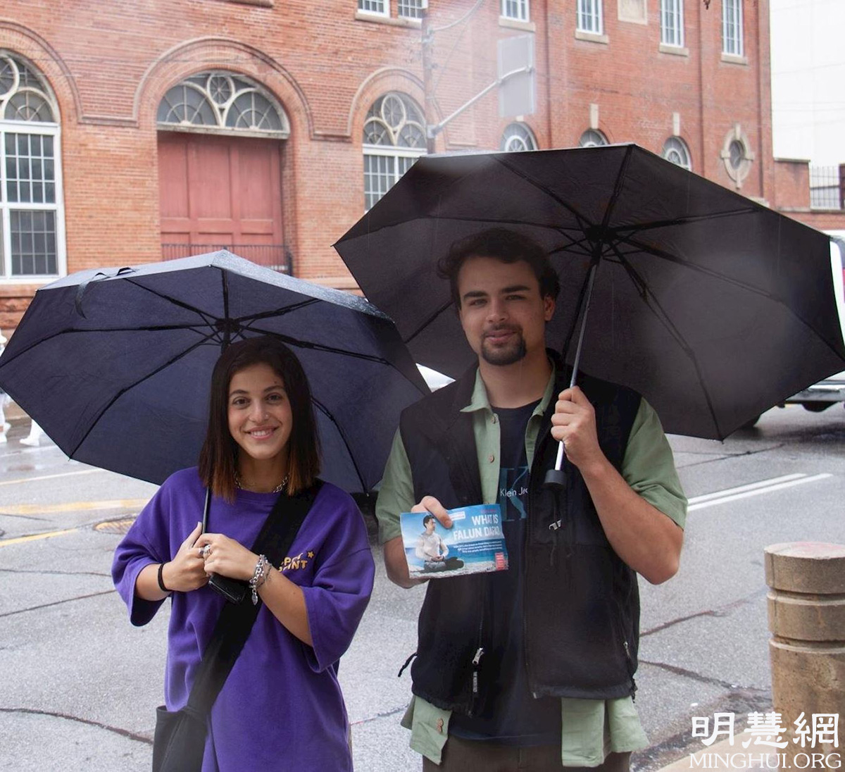 一位来自尼加拉瓜的先生对学员说:“法轮功被中共迫害的事情我之前有过一些了解。”当学员向他表示法轮功学员已经被中共迫害二十二年之久后,他表示很吃惊,并说:“我是信神的,我知道中共对很多信仰是限制和迫害的,中共在中国大陆做了很多恶事,迫害死了很多人,这就是共产主义,共产主义就是邪恶的,没有自由。”