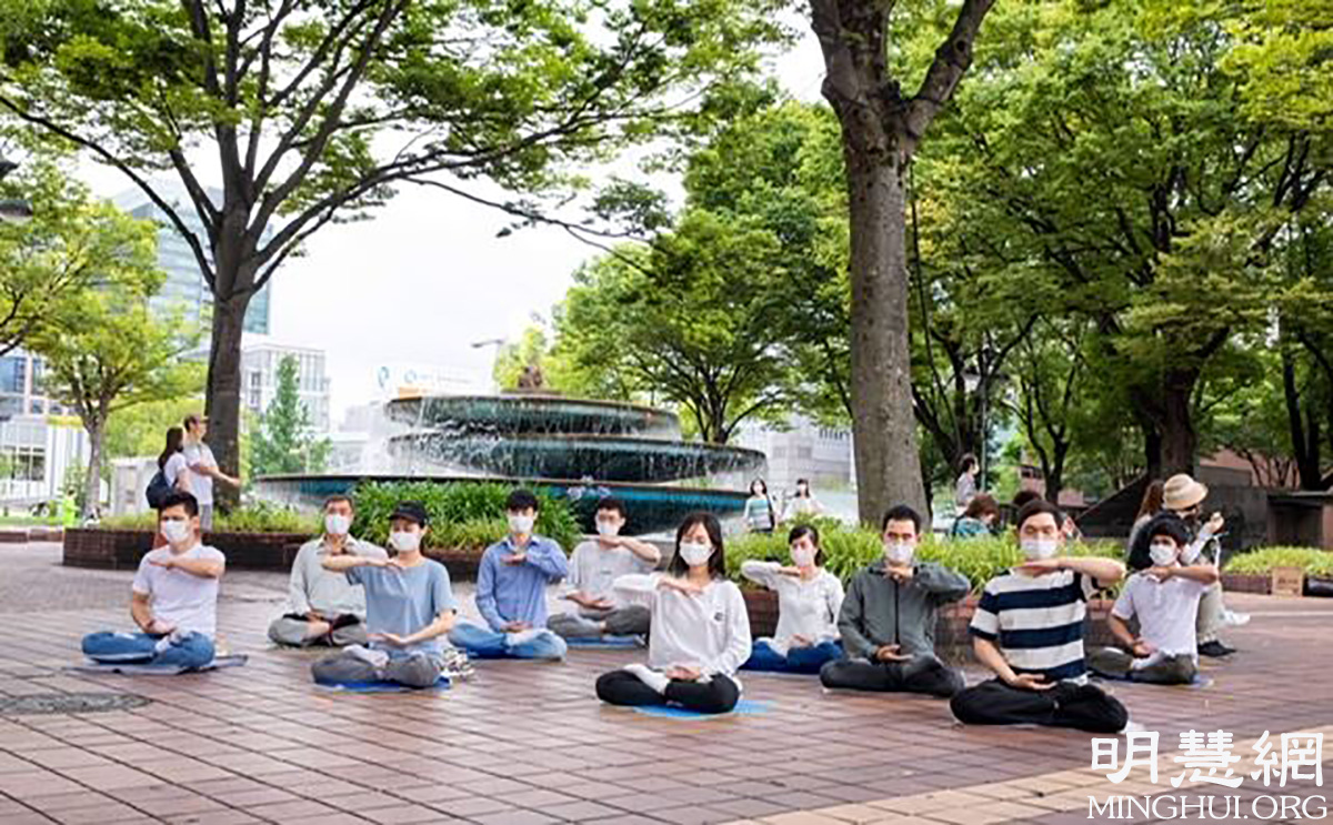 ![]() 图1~2:二零二一年六月二十七日,法轮功学员在日本名古屋市荣的喷水附近炼功时的情景 |