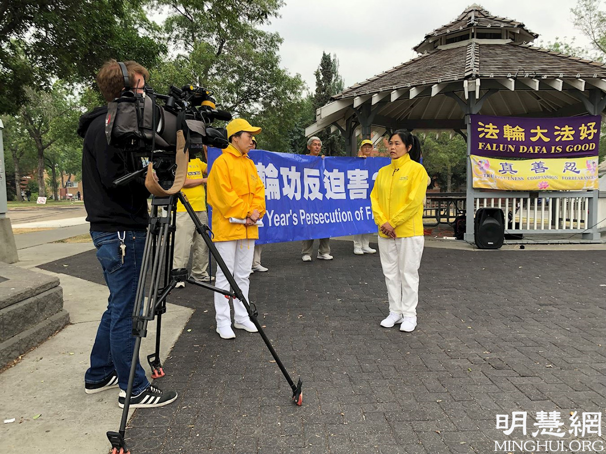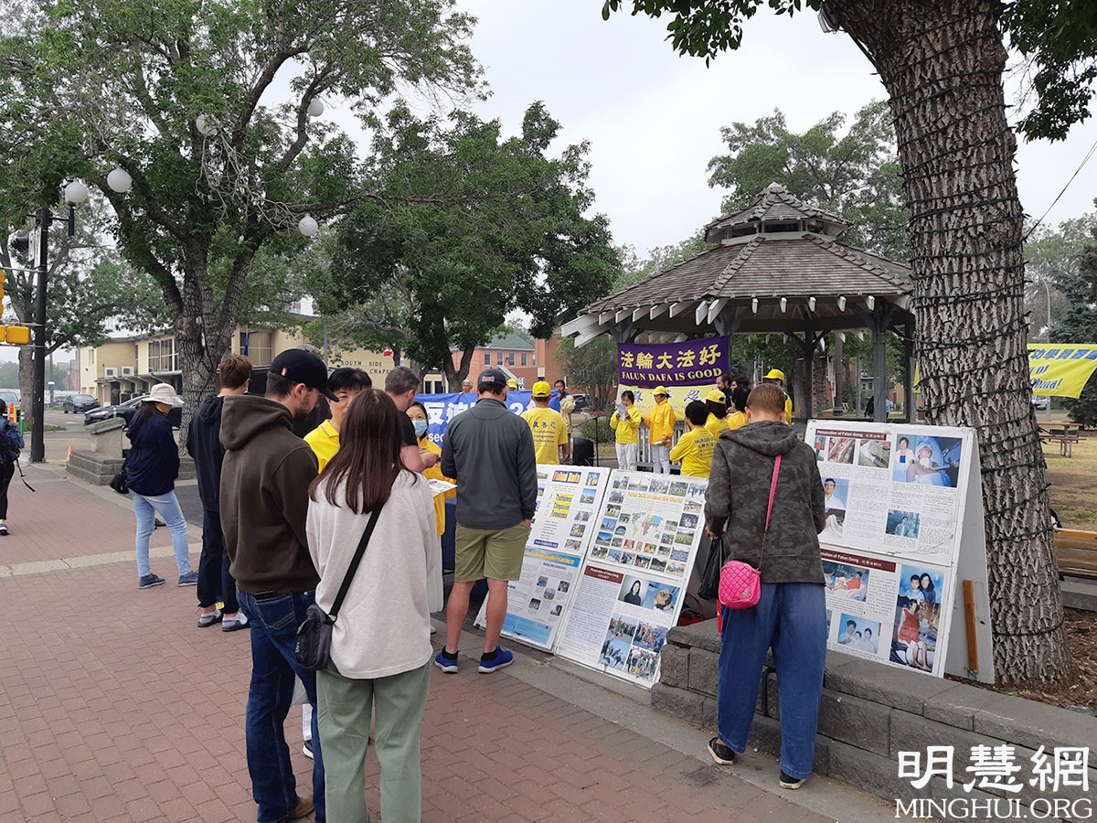 当日,部份法轮功学员参加了集会,演讲和展板吸引了许多行人,他们纷纷签名支持法轮功学员反抗中共迫害的行动。主流媒体Global News也到场采访了活动和法轮功学员。